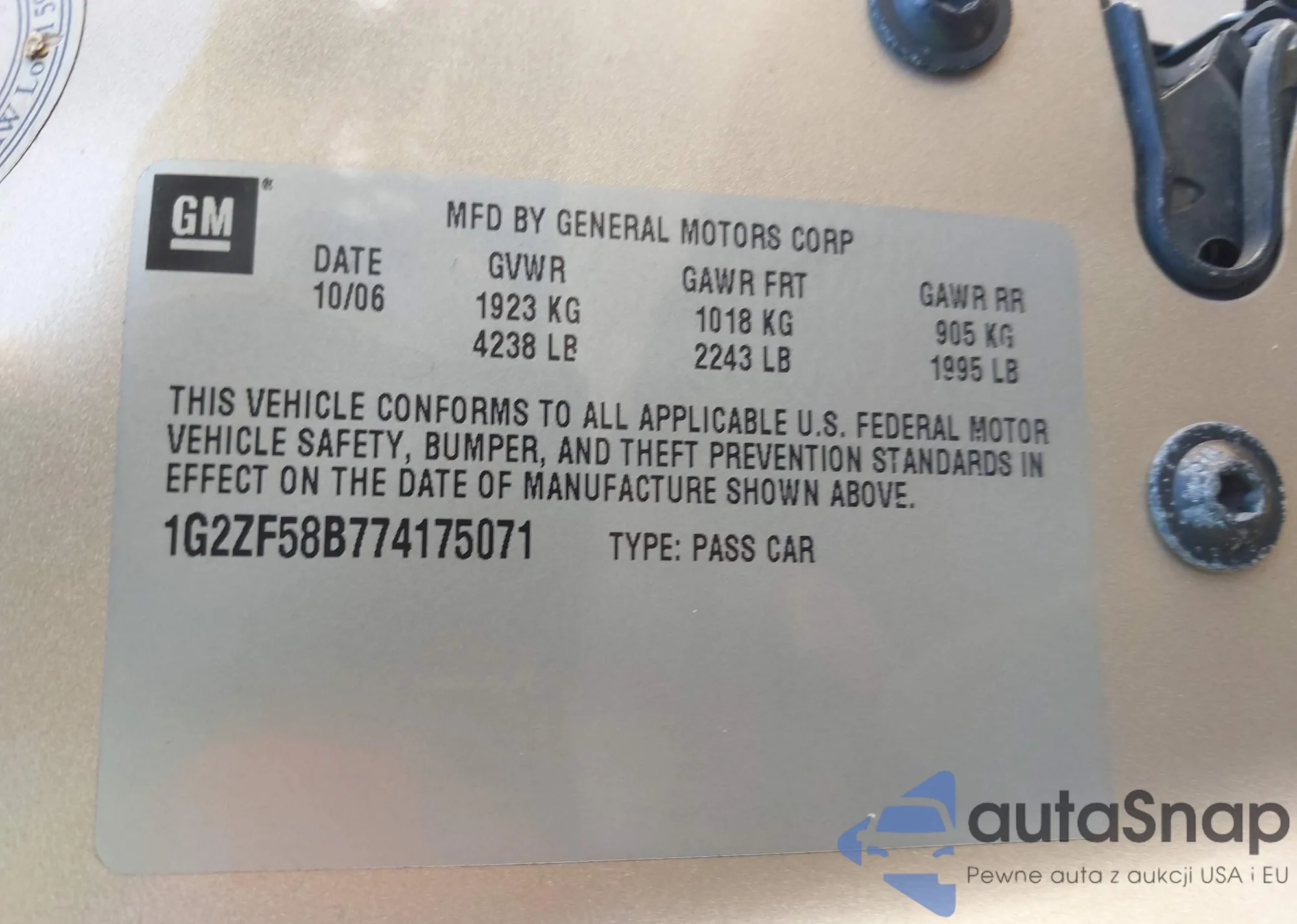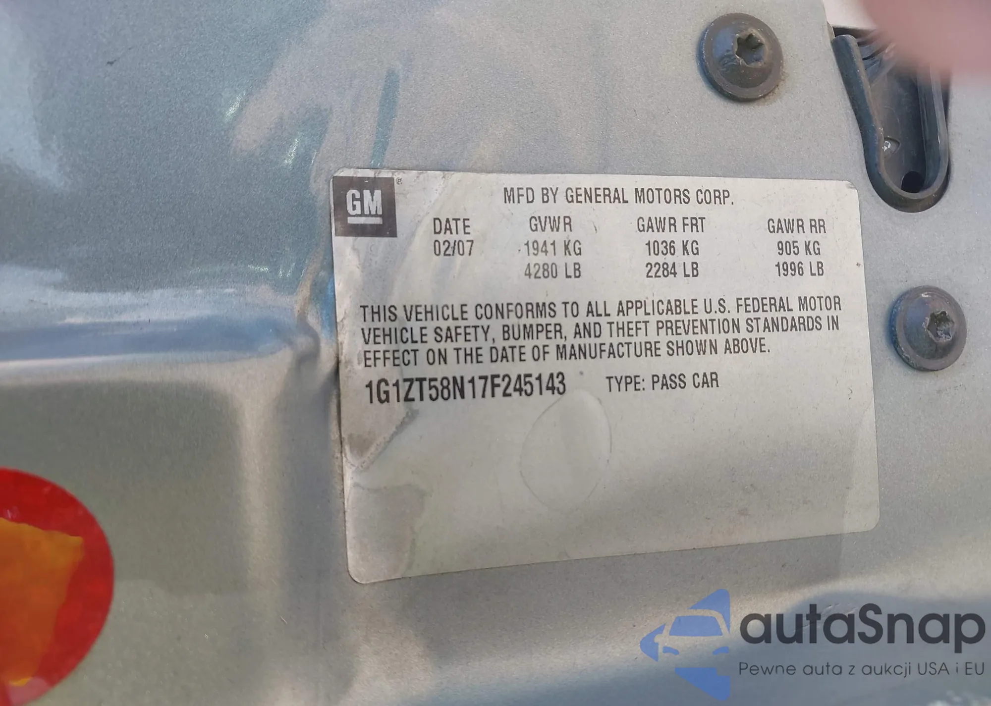 LOT: 43083764 VIN: 1G1ZT58N17F245143