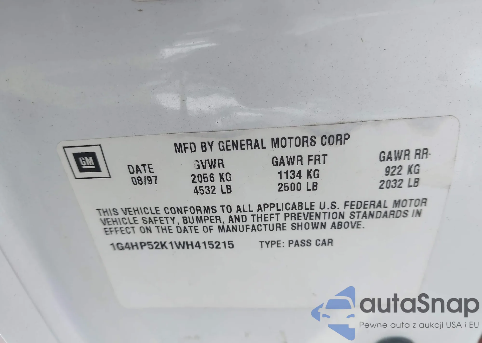 • VIN 1J4GW48S6YC419162