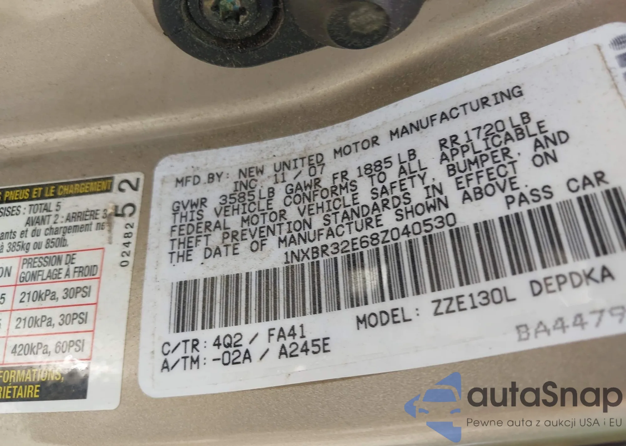 LOT: 43087235 VIN: 1NXBR32E68Z040530