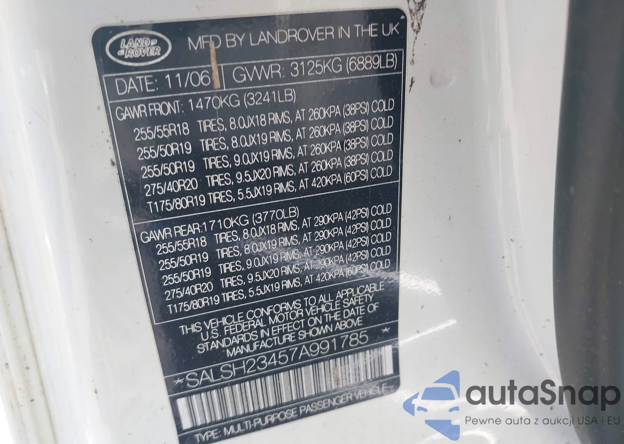 LOT: 43087532 VIN: SALSH23457A991785