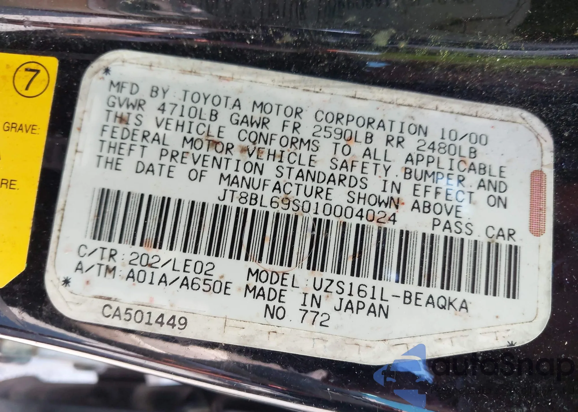 LOT: 43091174 VIN: JT8BL69S010004024