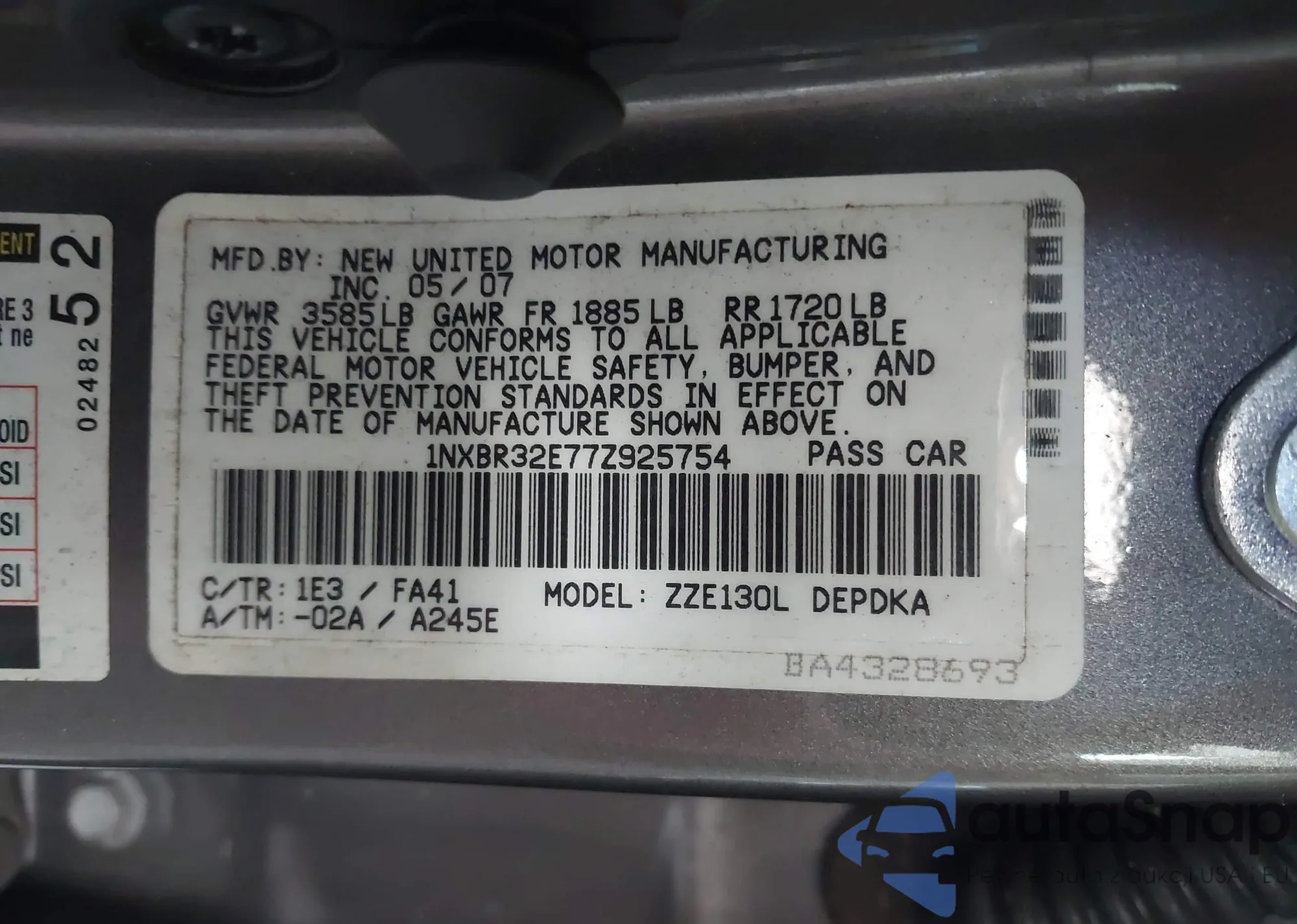 LOT: 43068967 VIN: 1NXBR32E63Z170493