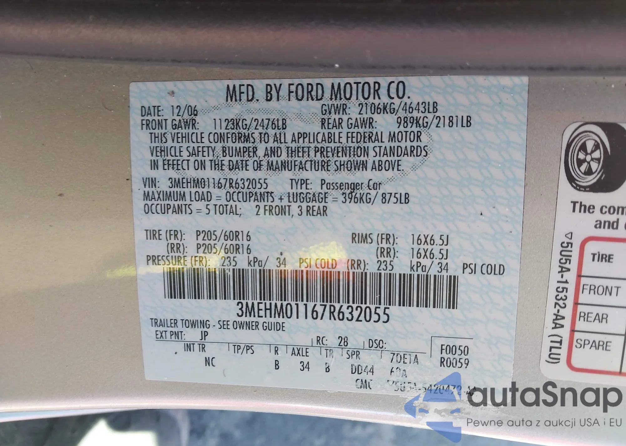 • VIN 1FAHP35NX8W277905