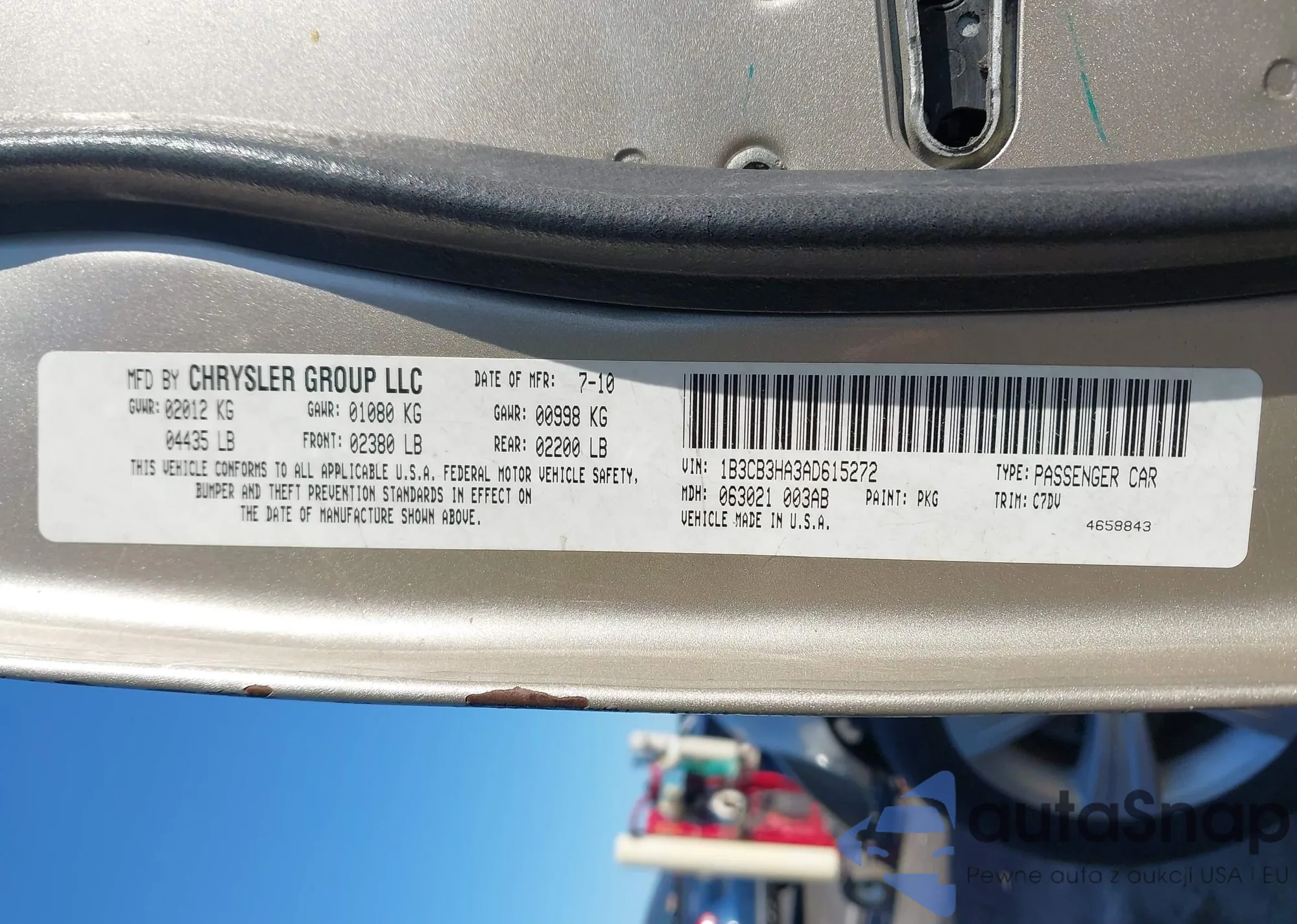LOT: 43108477 VIN: 1B3CB3HA3AD615272