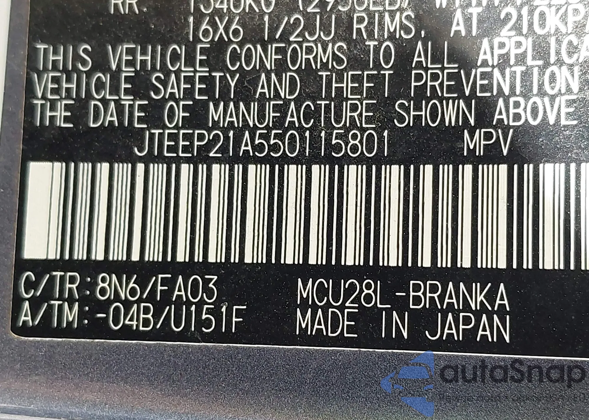 LOT: 43131892 VIN: JTKKU10478J018869