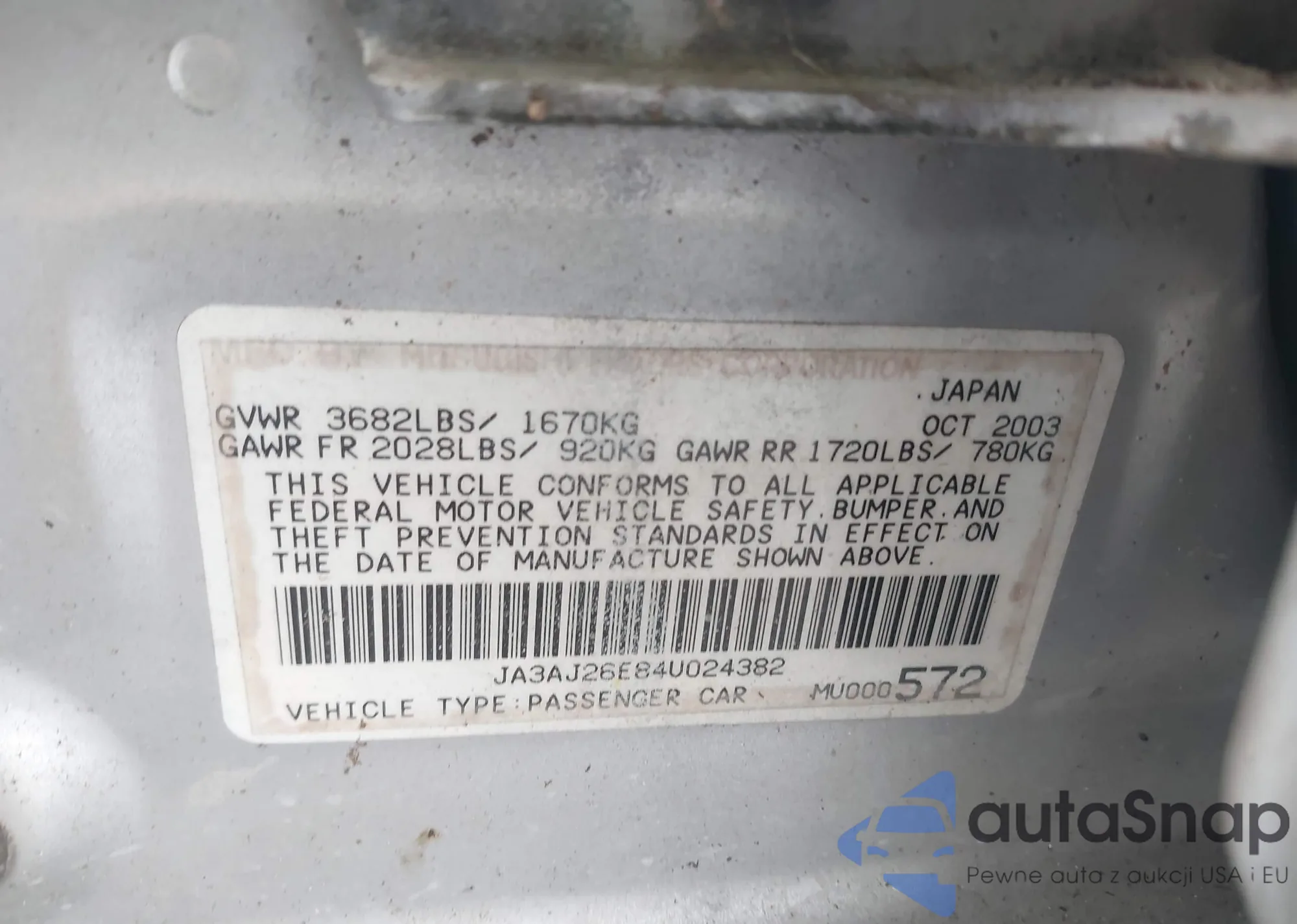 LOT: 43135165 VIN: JA3AJ26E84U024382