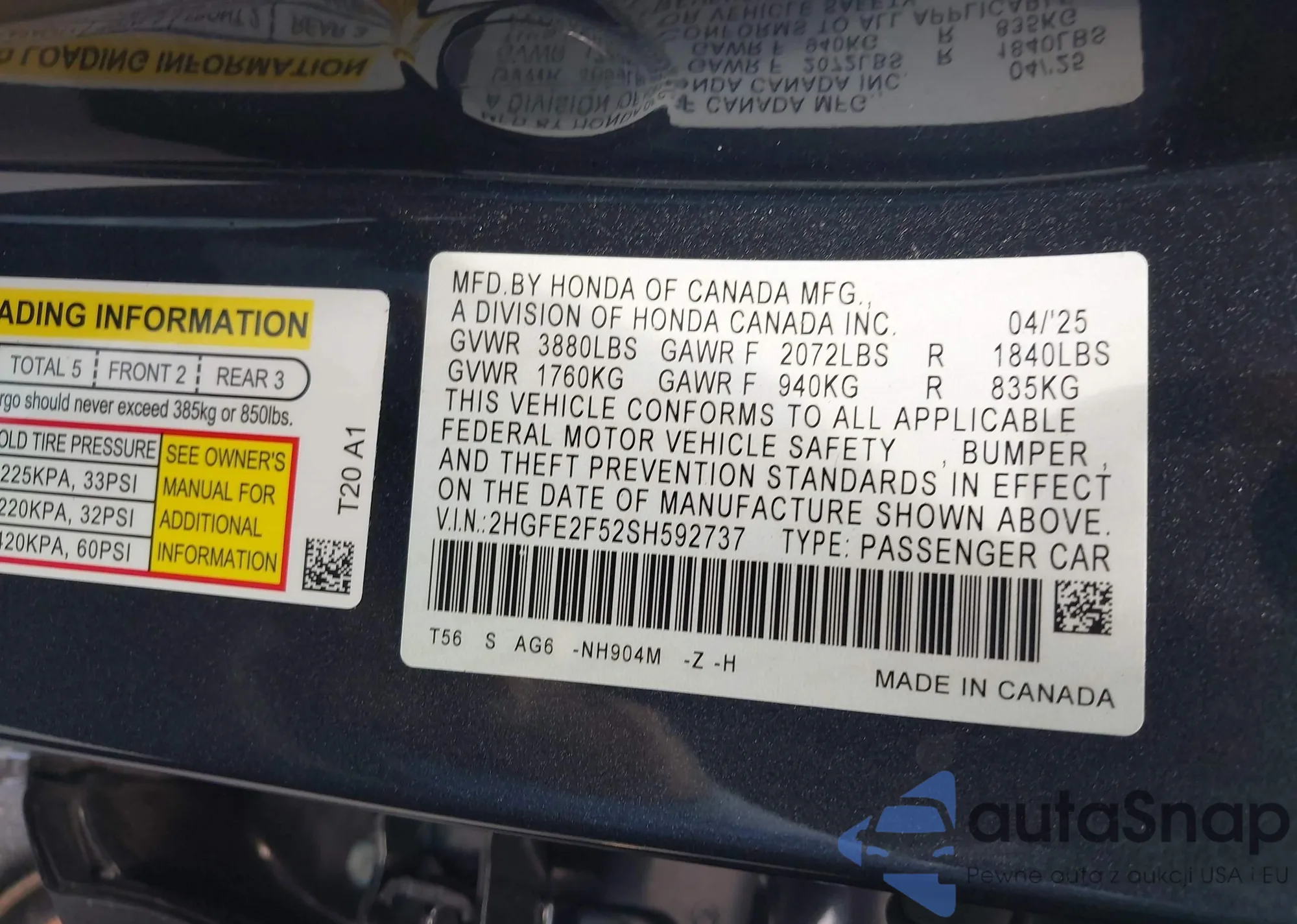 • VIN 2HGFE2F52SH592737