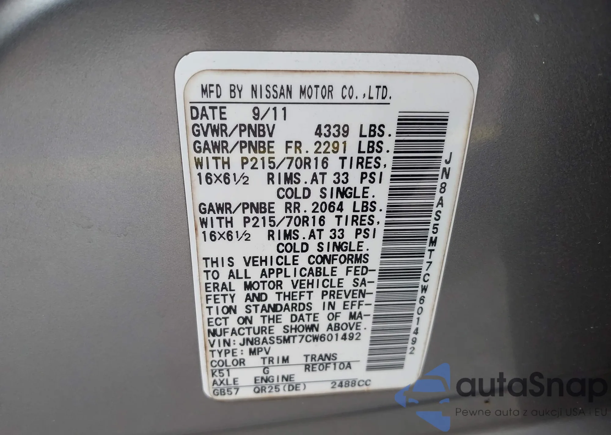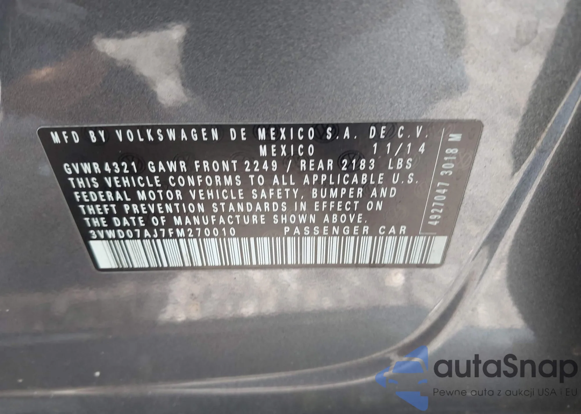• VIN 3VW3L7AJ4CM420105