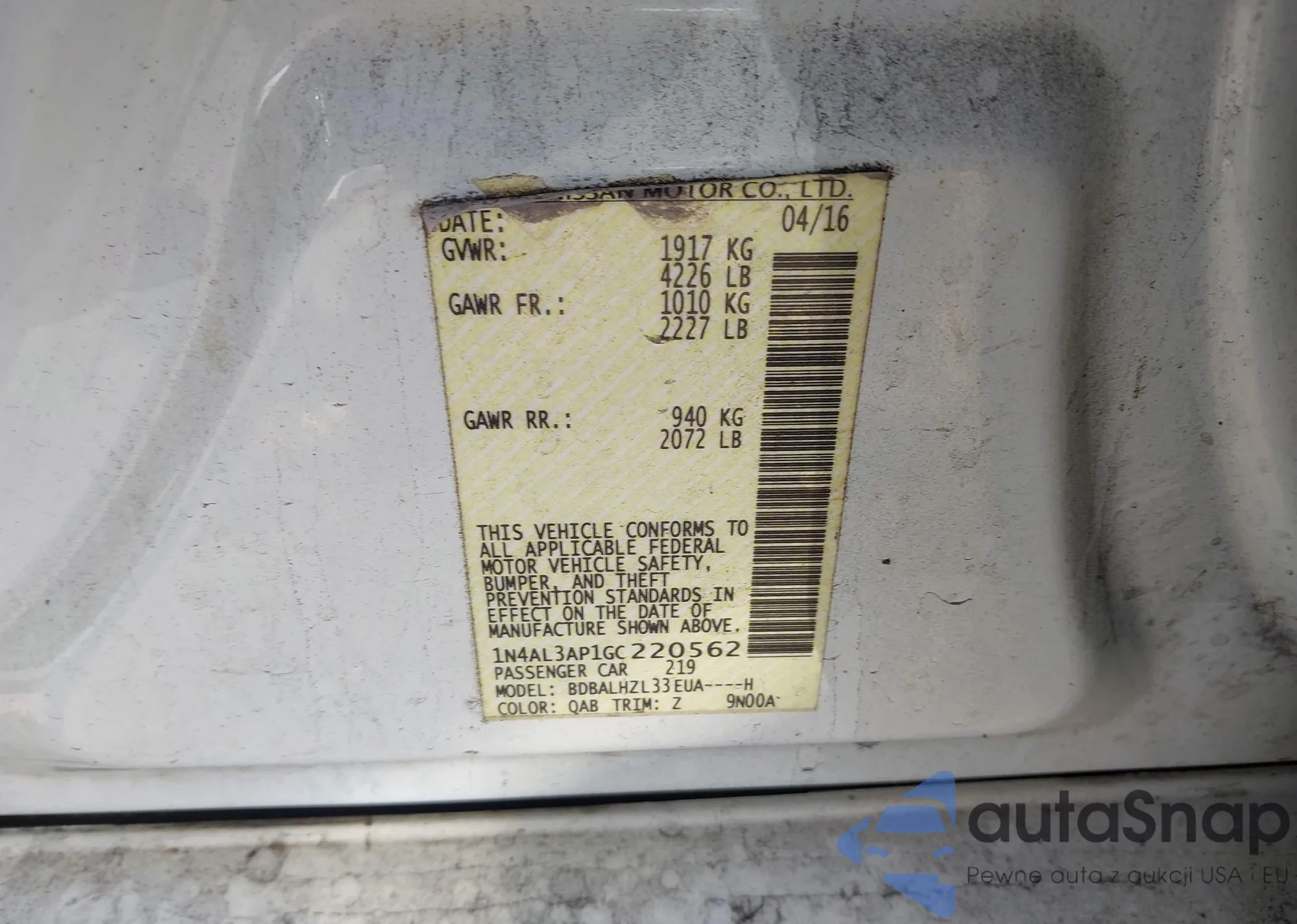 • VIN 1N4AL3AP1GC220562