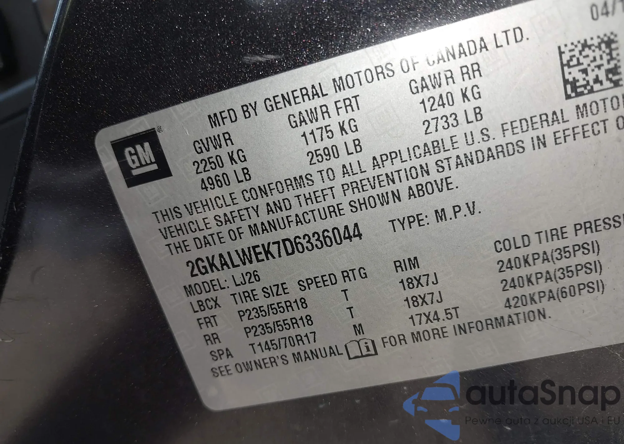 • VIN 2GKALWEK7D6336044