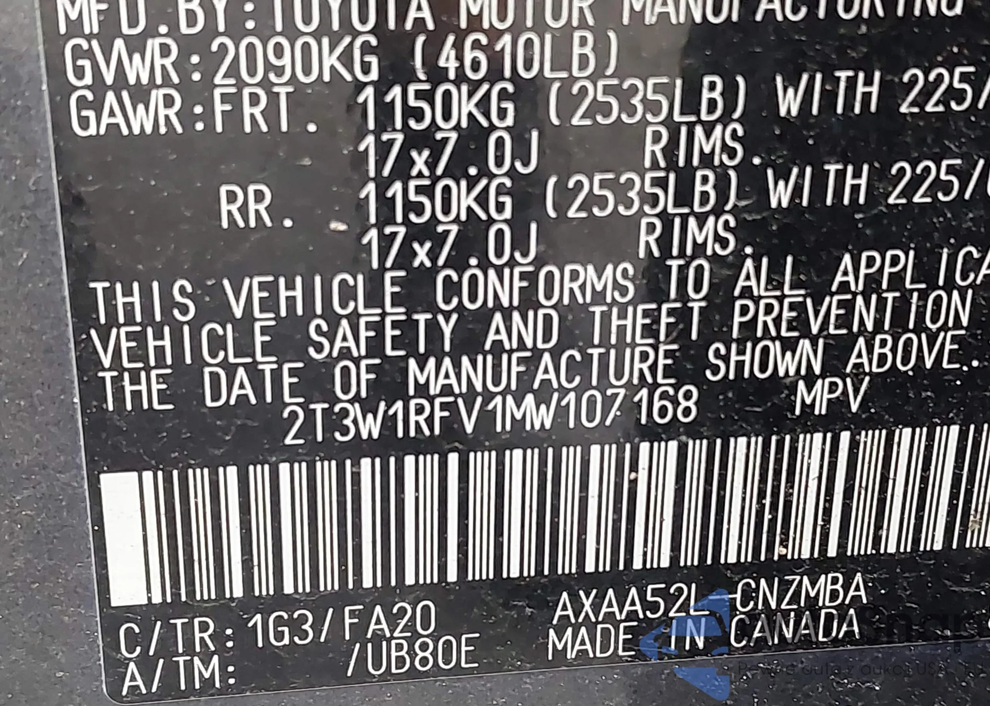 • VIN 2T3W1RFV1MW107168