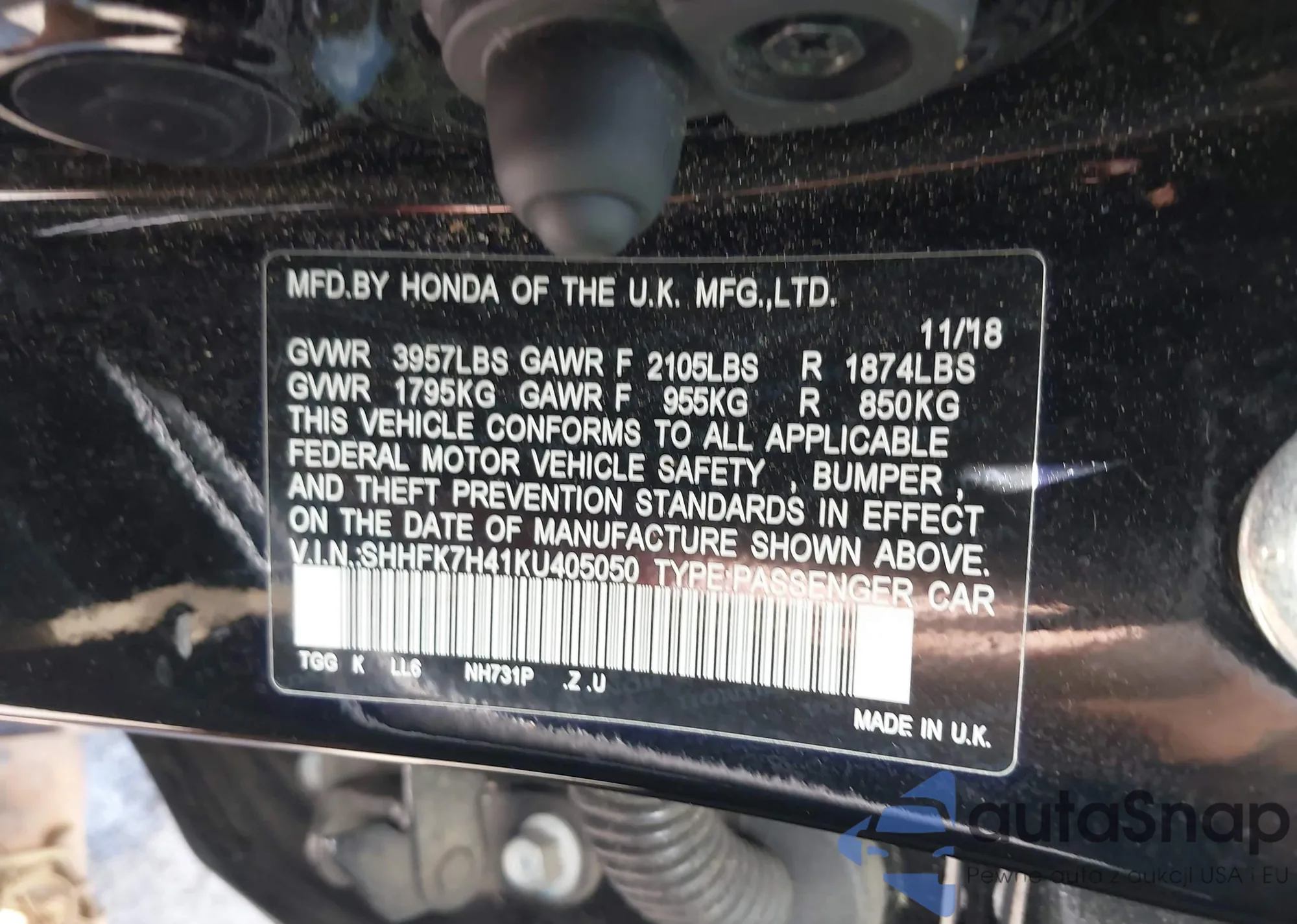• VIN SHHFK7H41KU405050