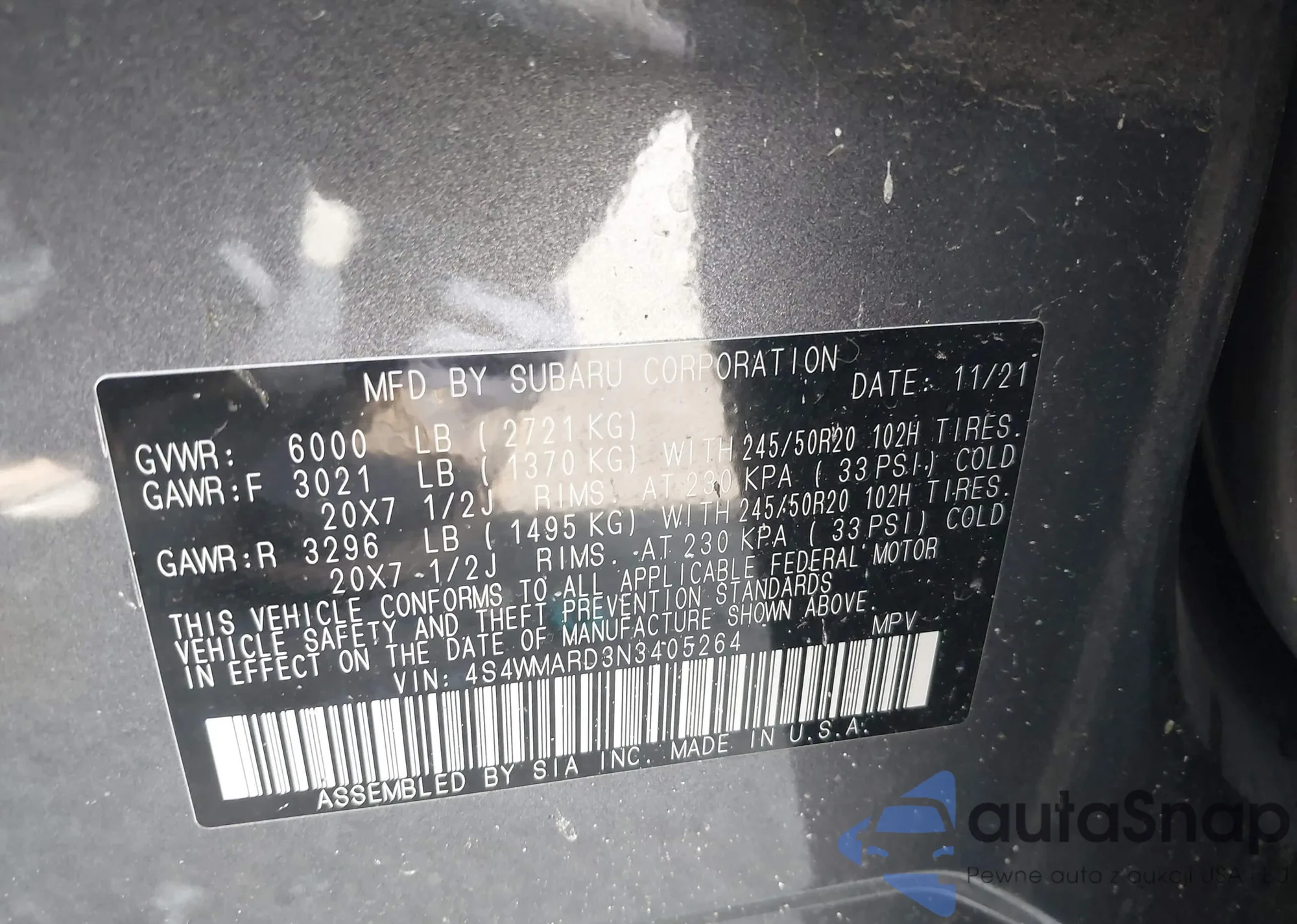 LOT: 42511854 VIN: 2T3W1RFV1MW107168