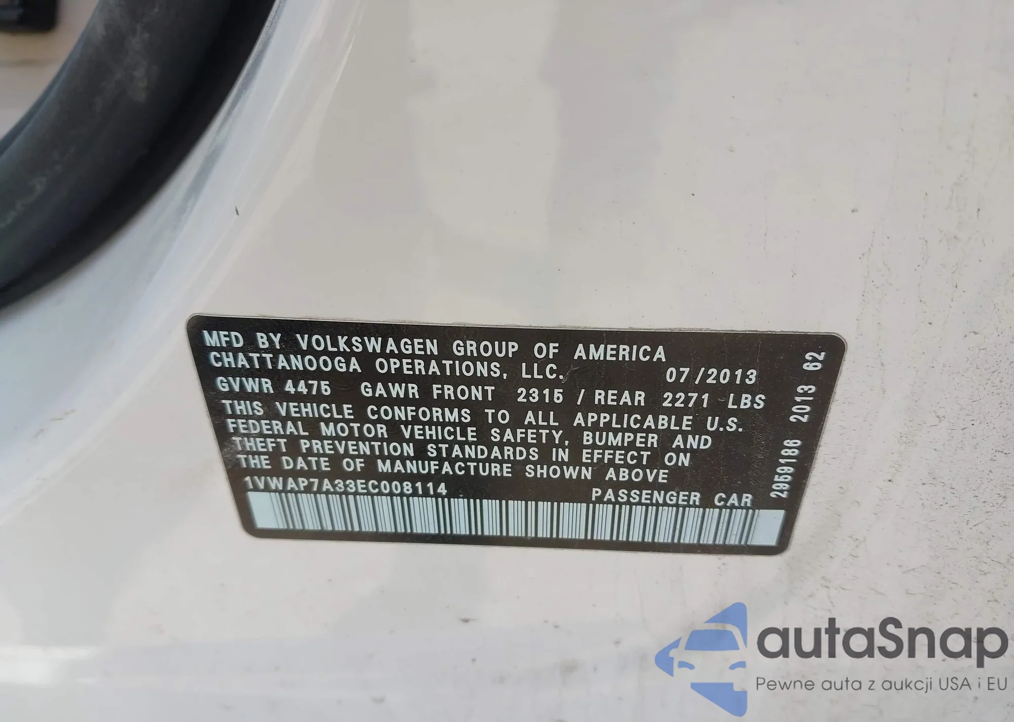 • VIN 1VWAP7A33EC008114
