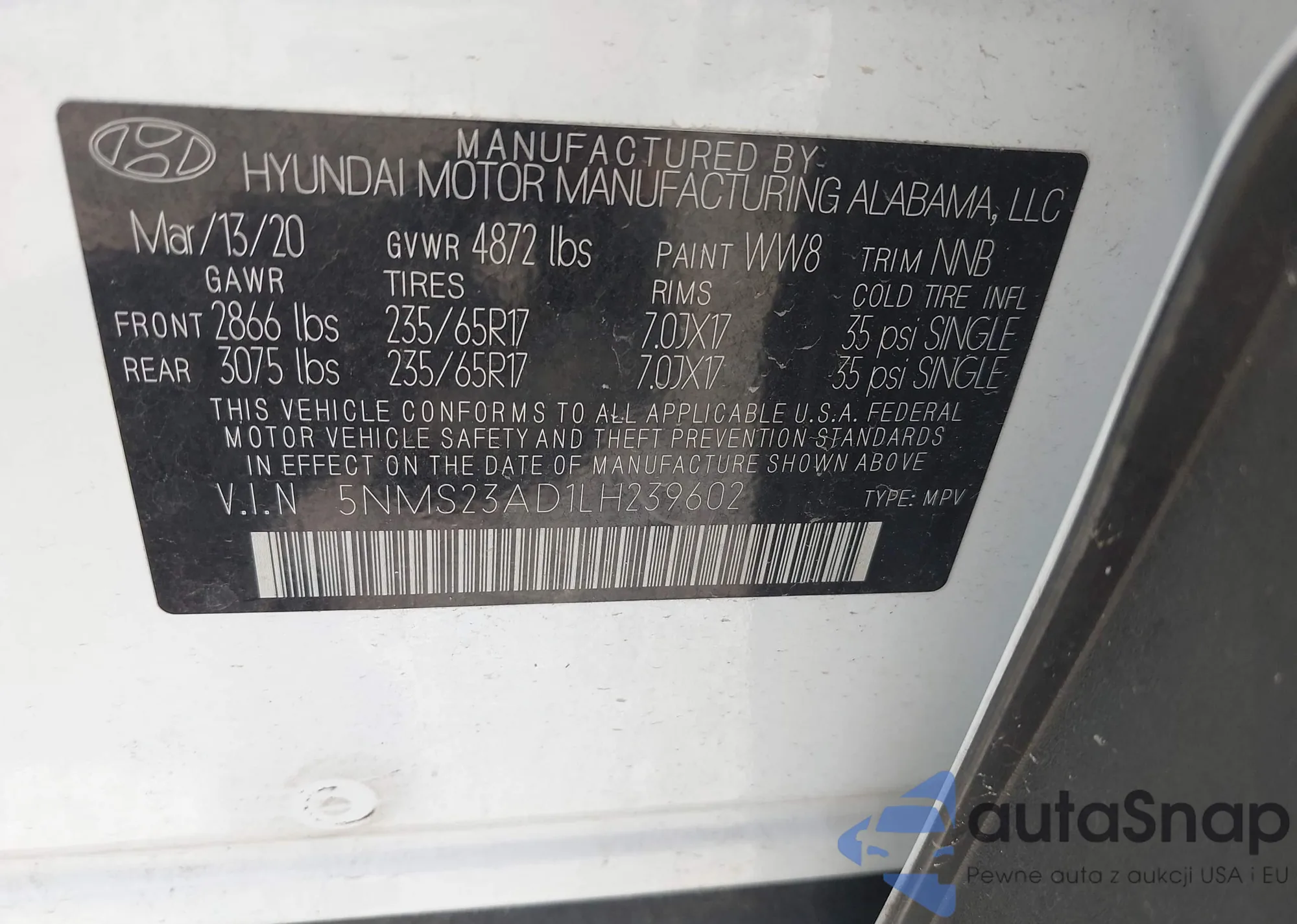 • VIN 5NMS23AD1LH239602