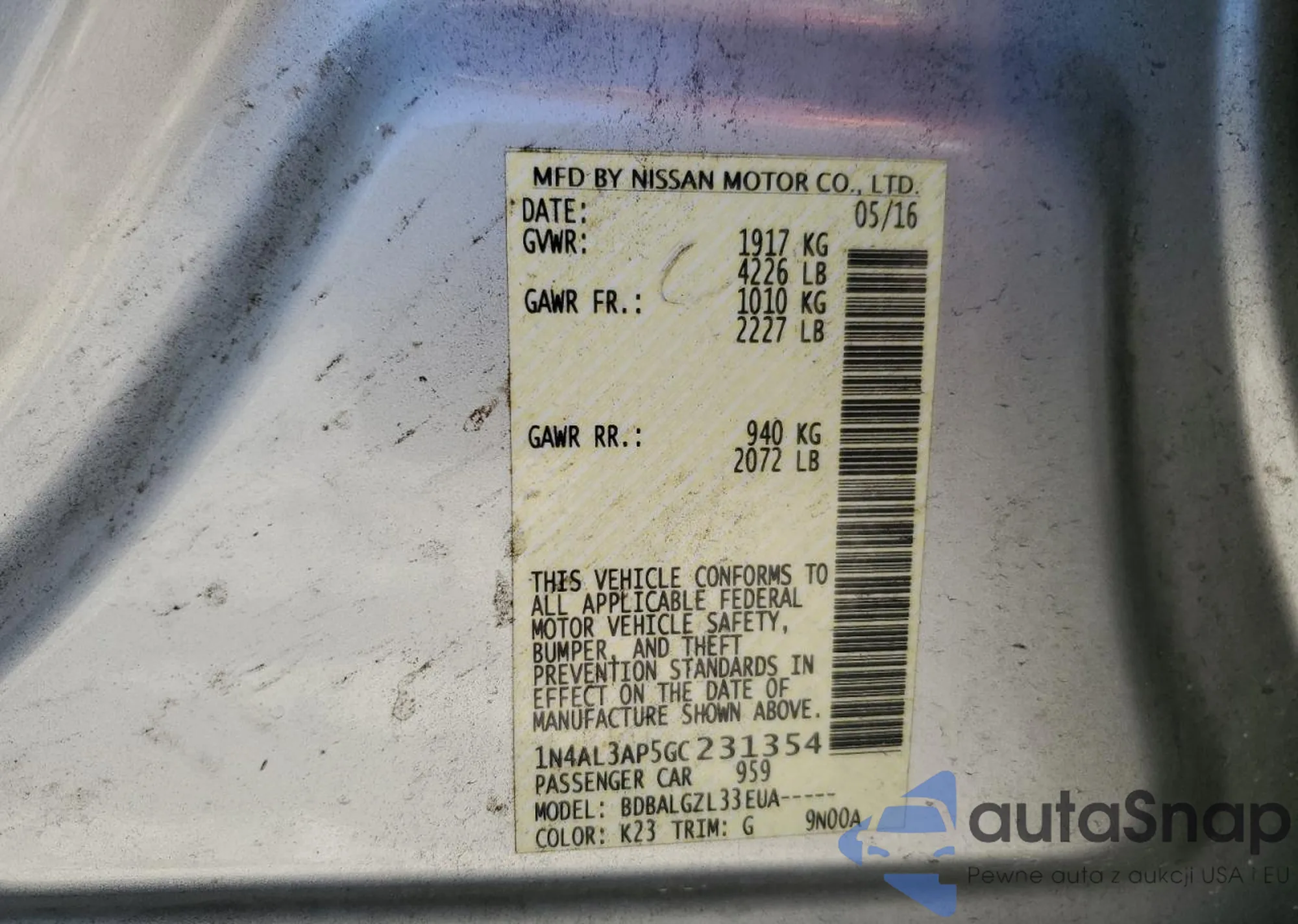 LOT: 43191620 VIN: WBAJE5C52JWA92673