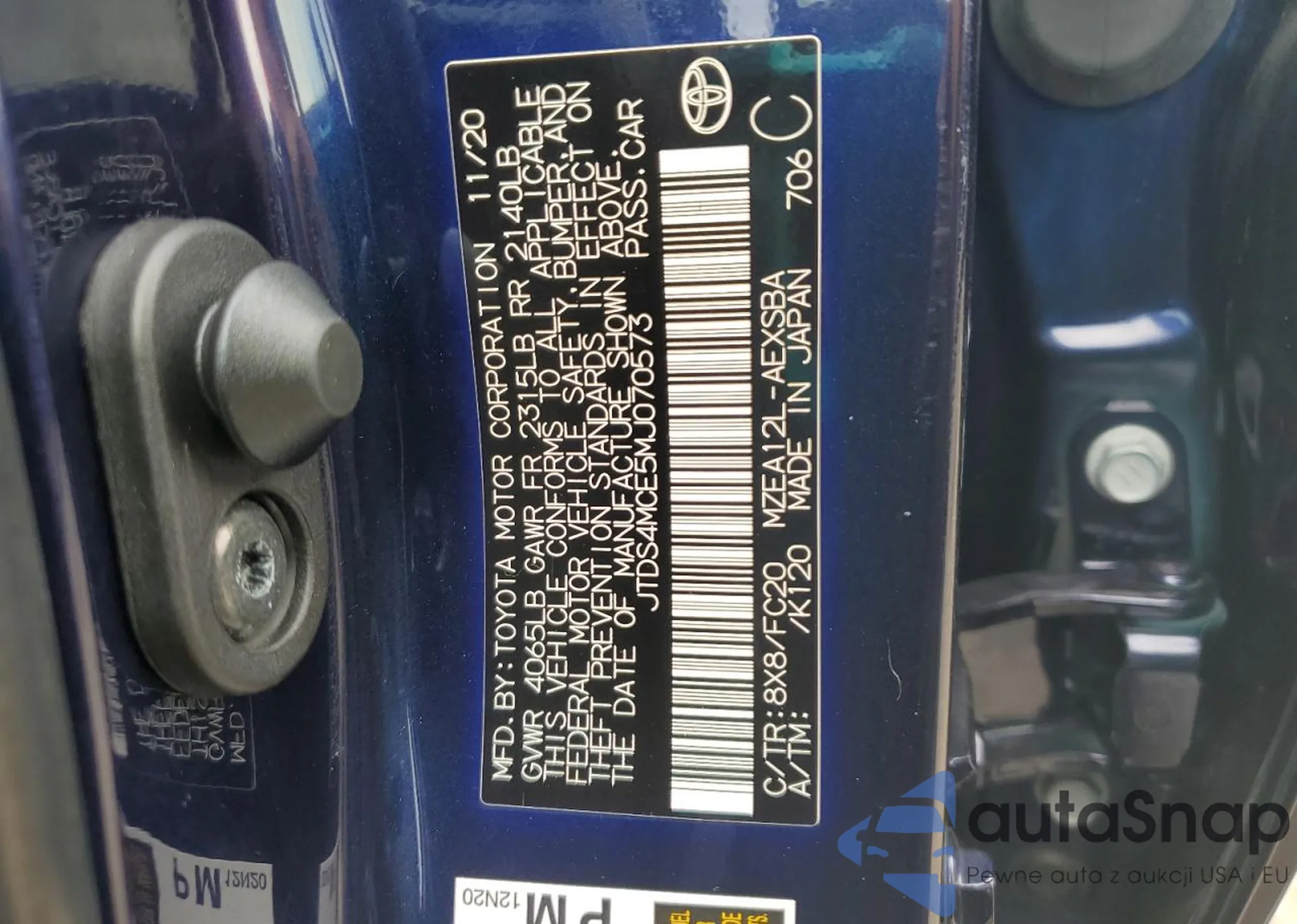 LOT: 80105515 VIN: JTDS4MCE5MJ07573