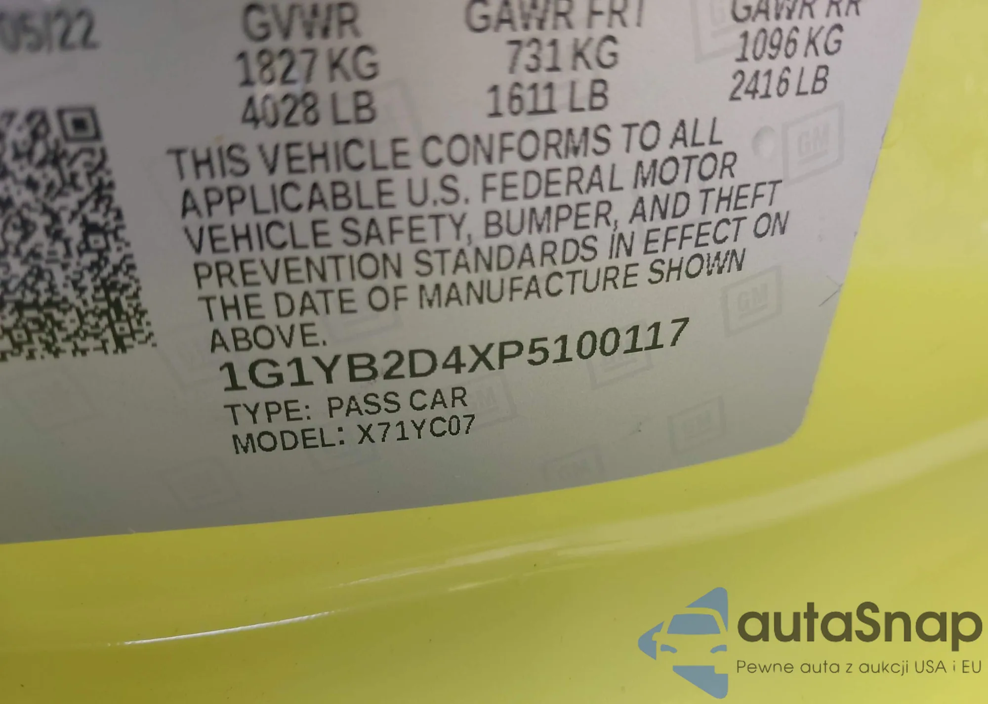 • VIN 1G1YB2D4XP5100117