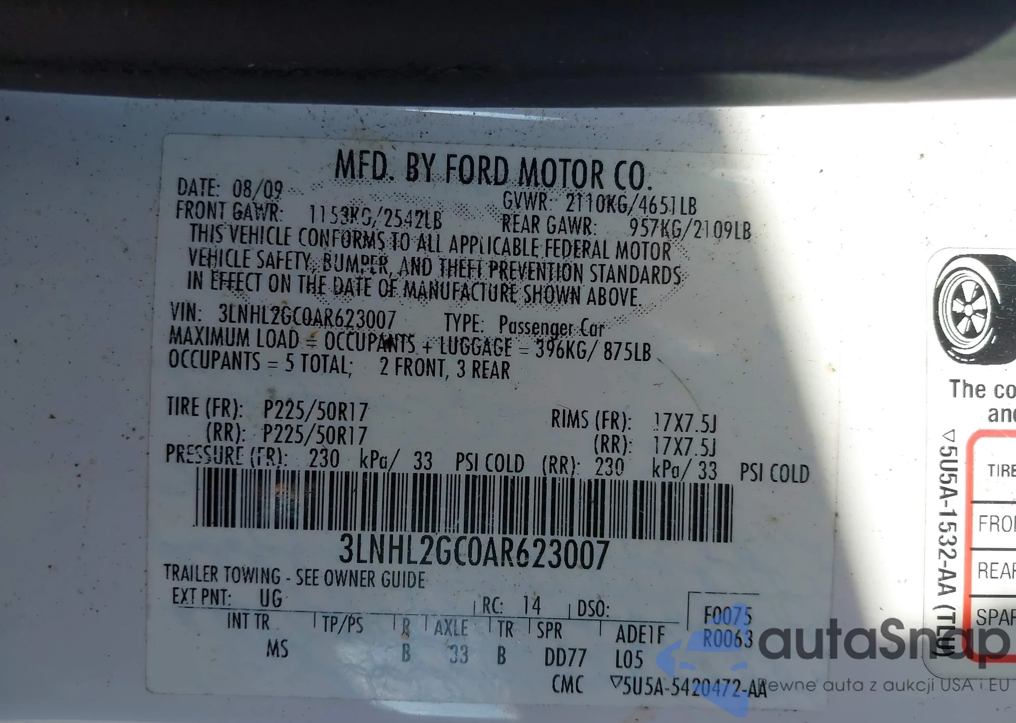 • VIN 3LNHL2GC0AR623007