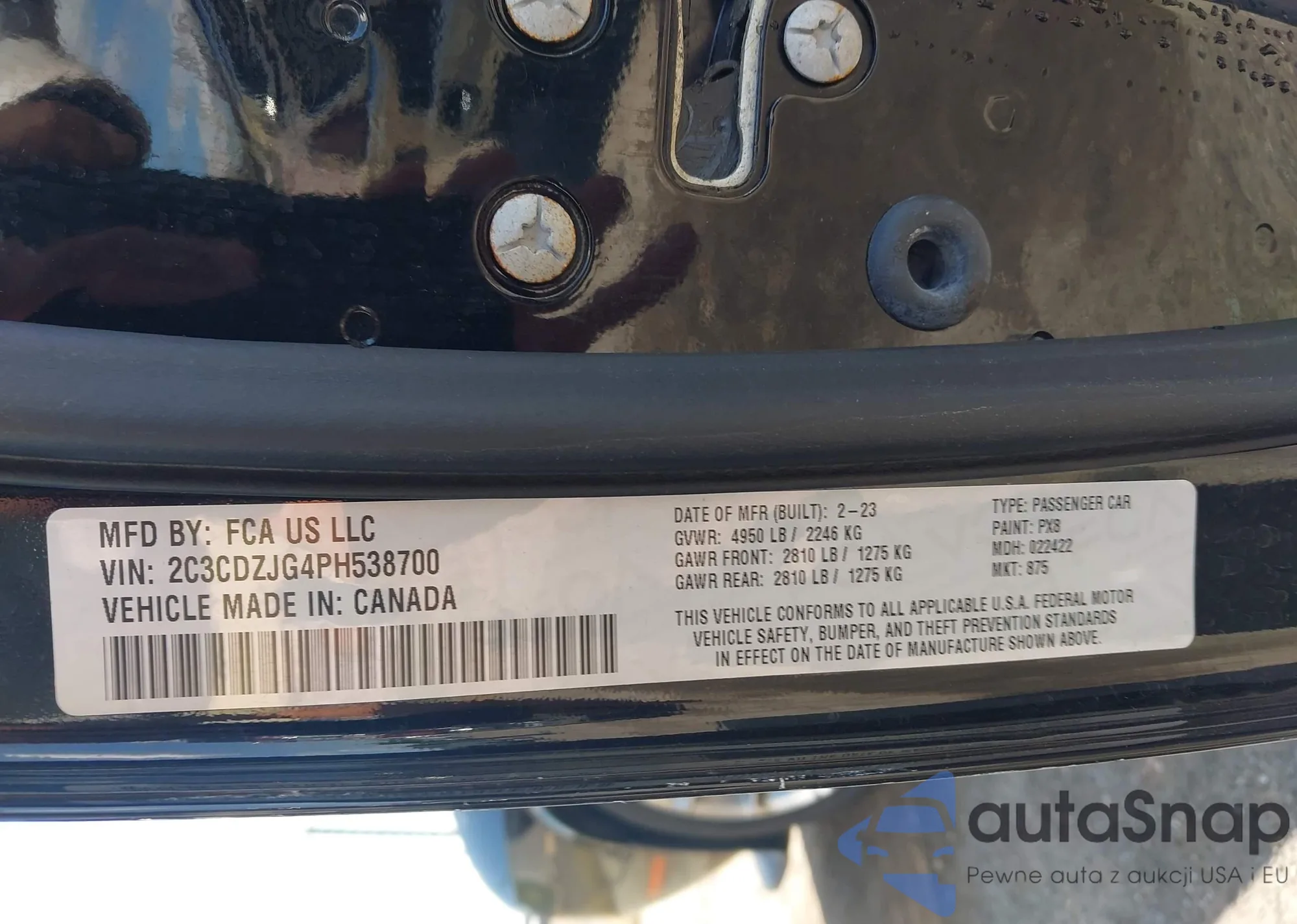 • VIN 2C3CDZJG4PH538700