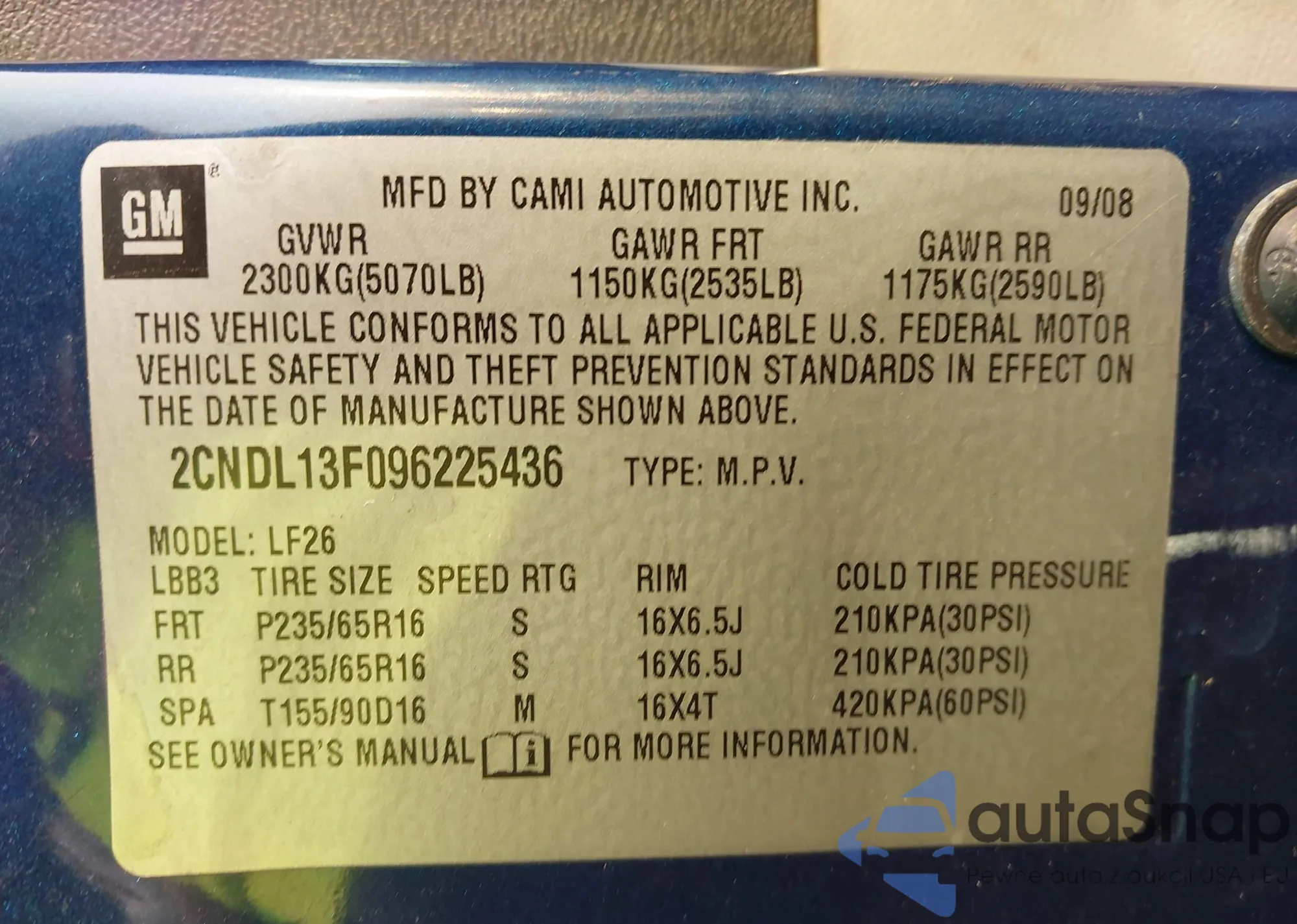 • VIN 2CNDL13F096225436