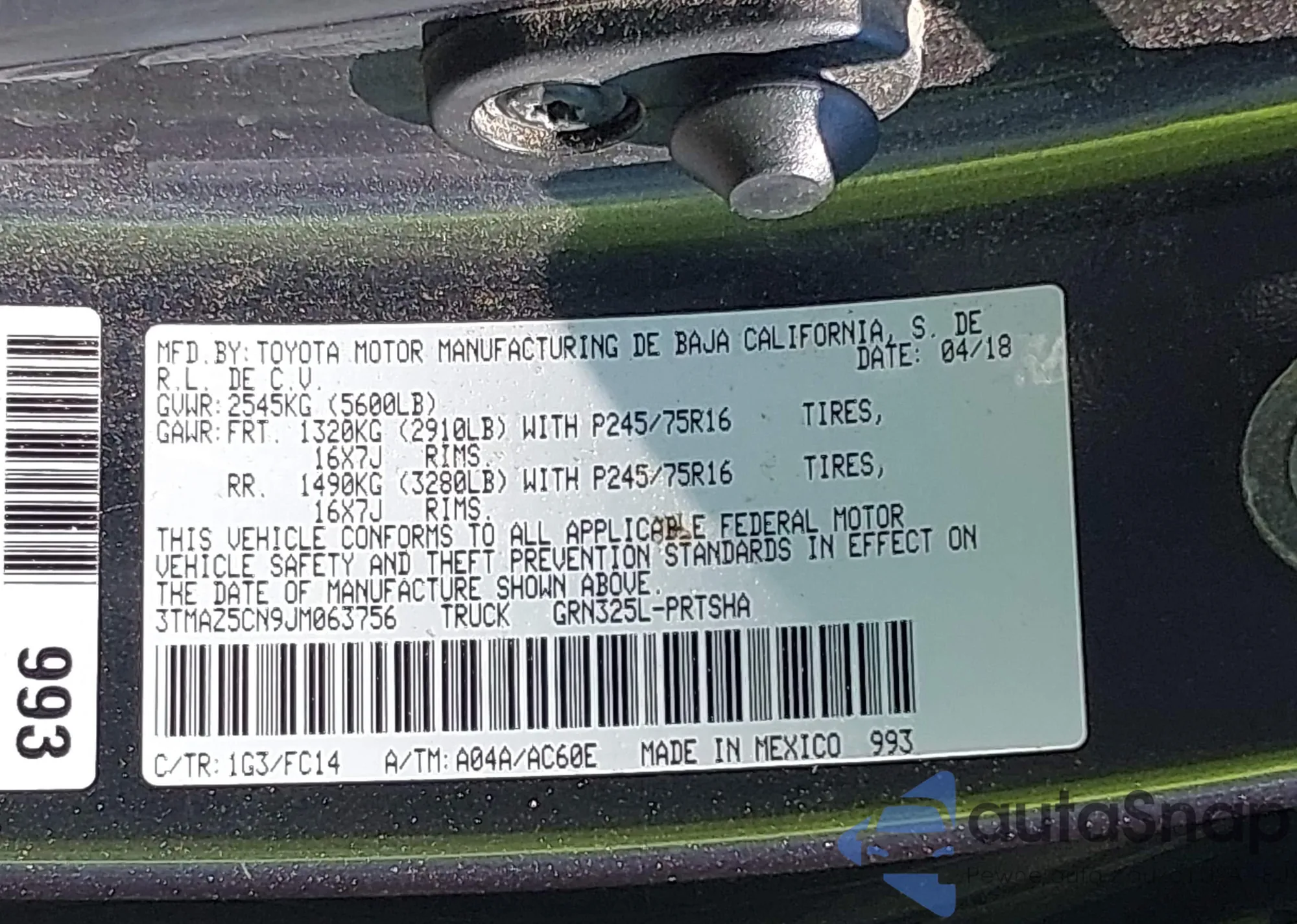 LOT: 43158456 VIN: 3TMAZ5CN9JM063756
