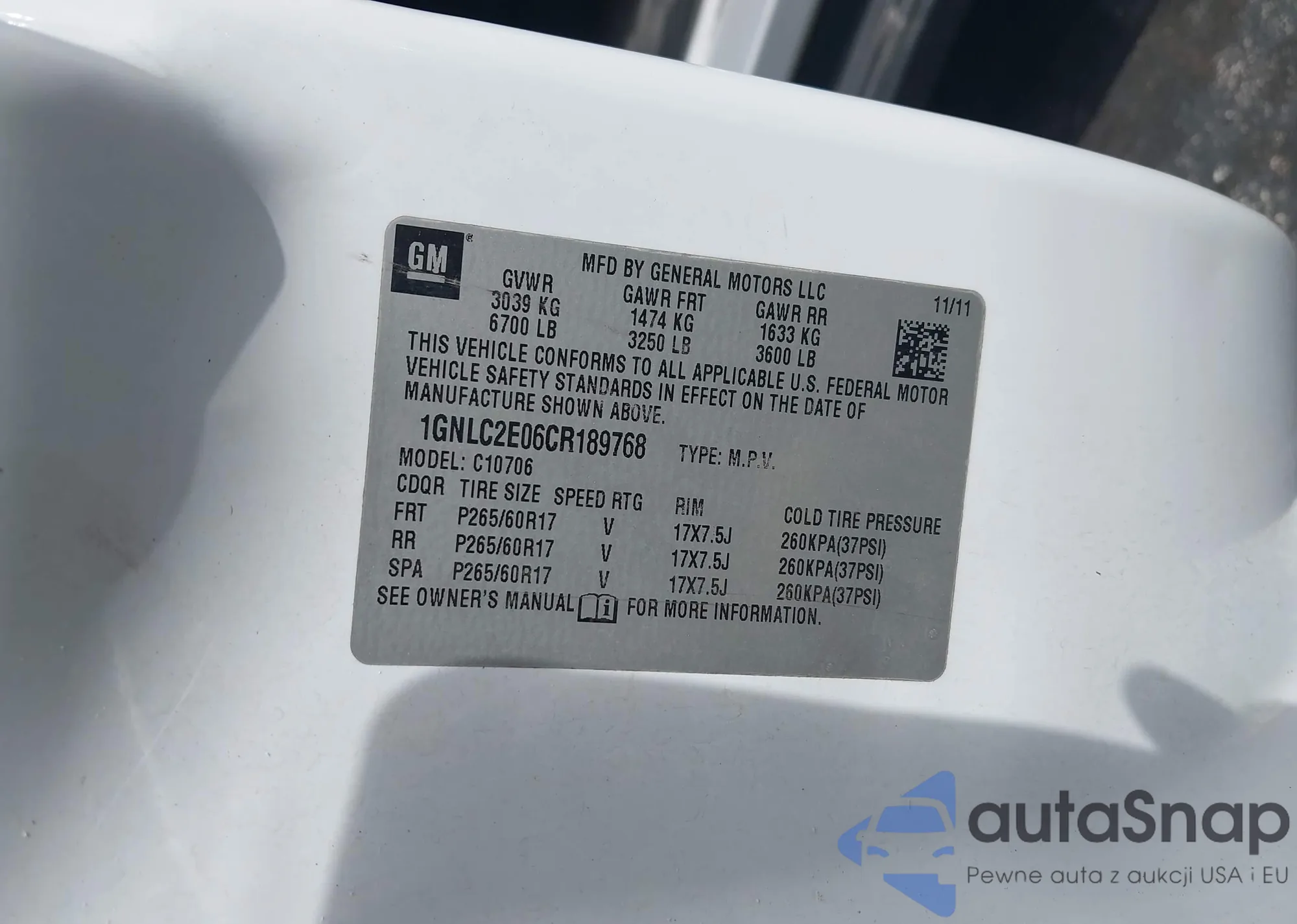 LOT: 43157326 VIN: 2CNDL13F096225436