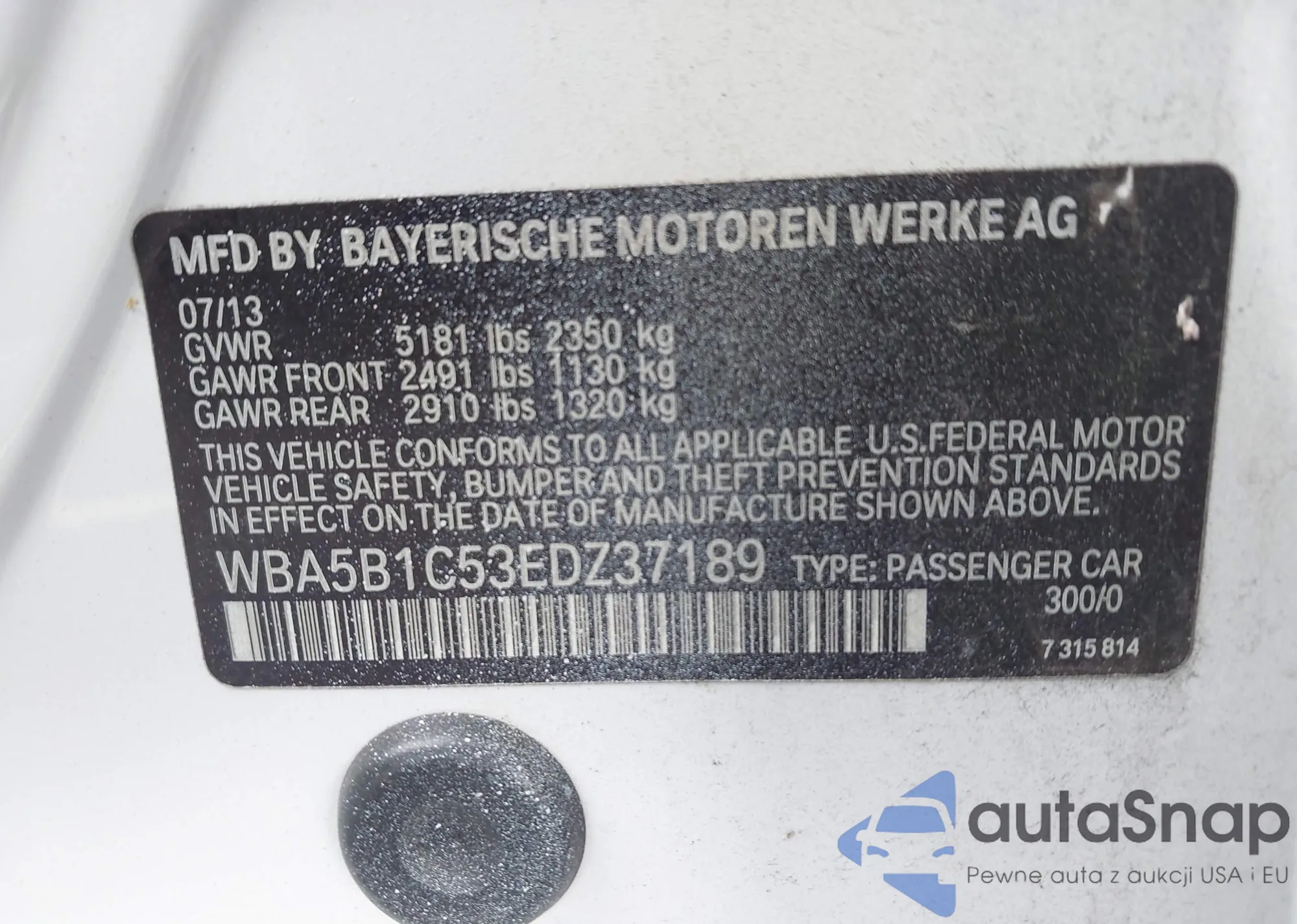 • VIN WBA5B1C53EDZ37189