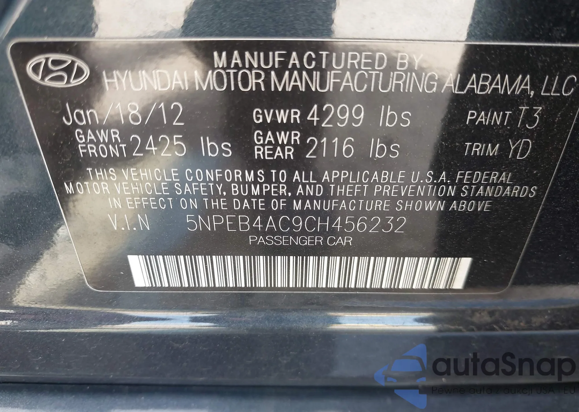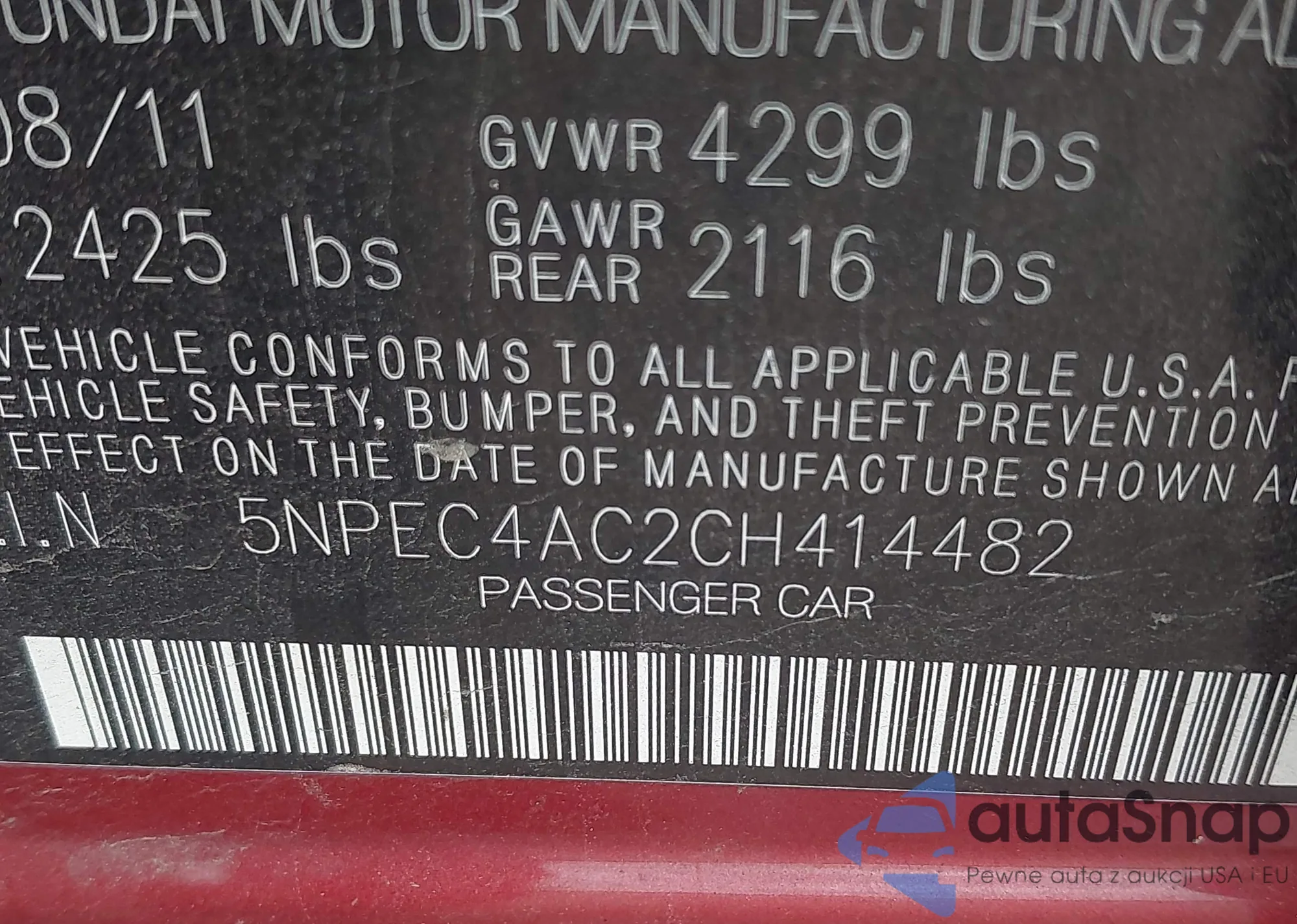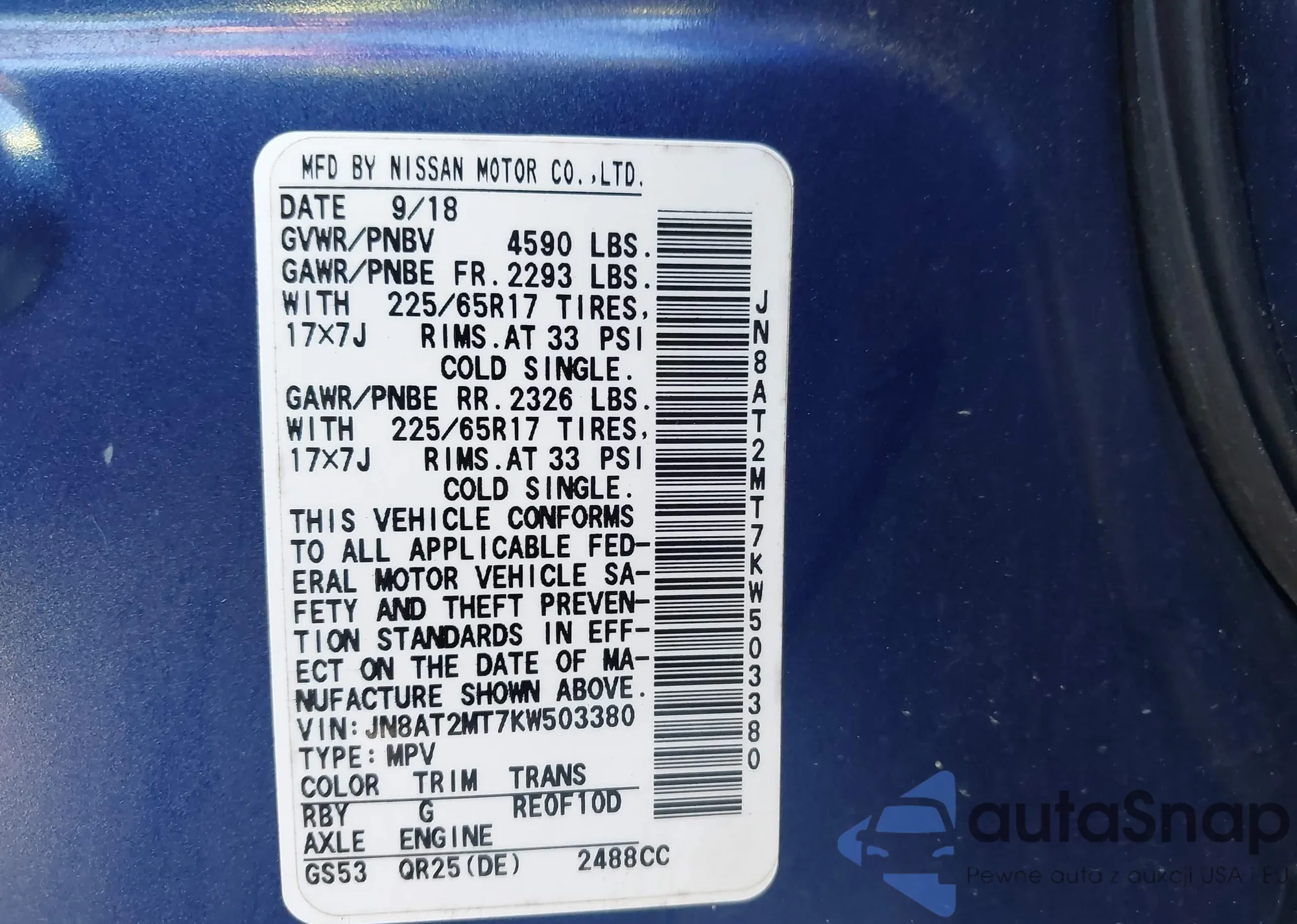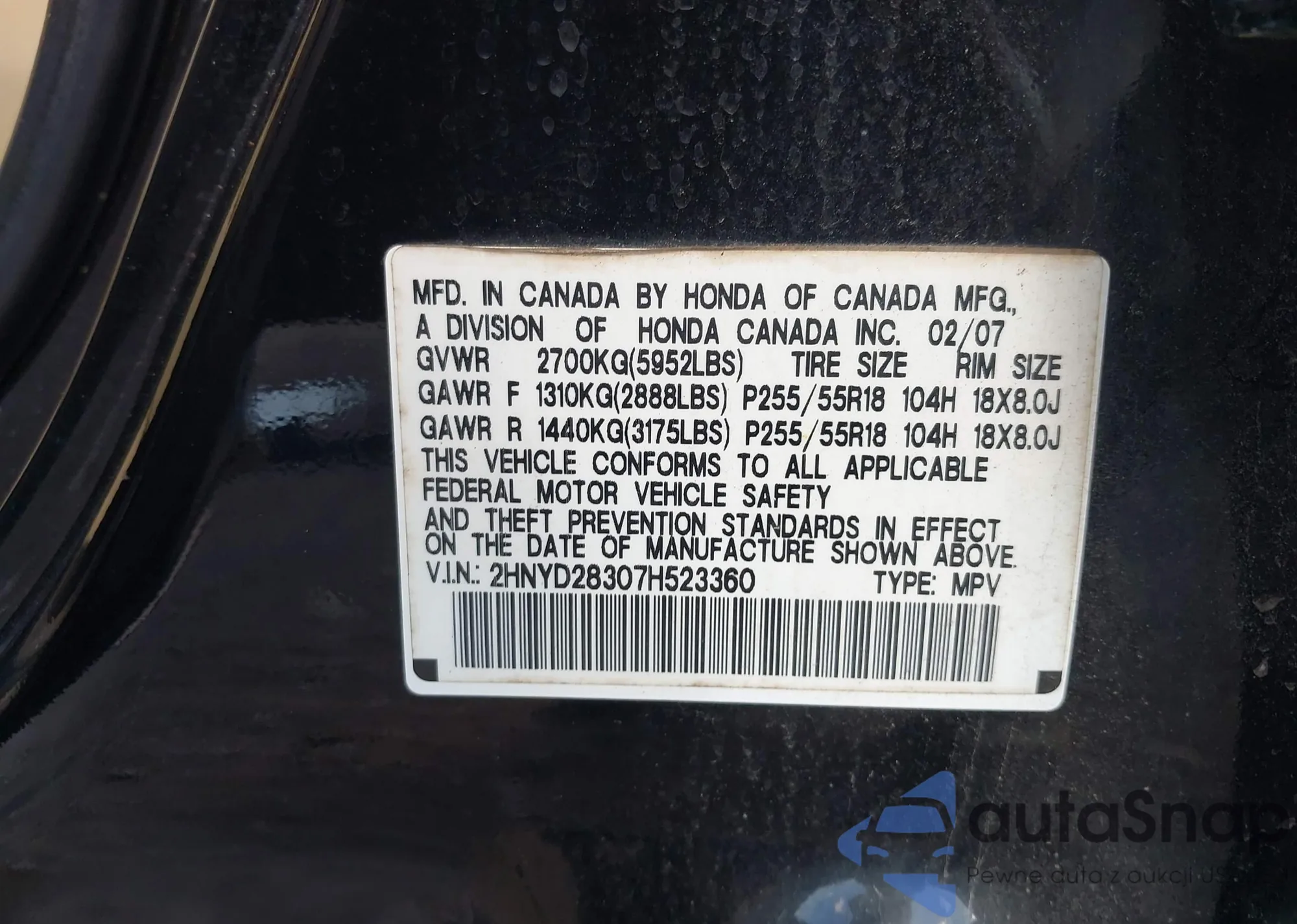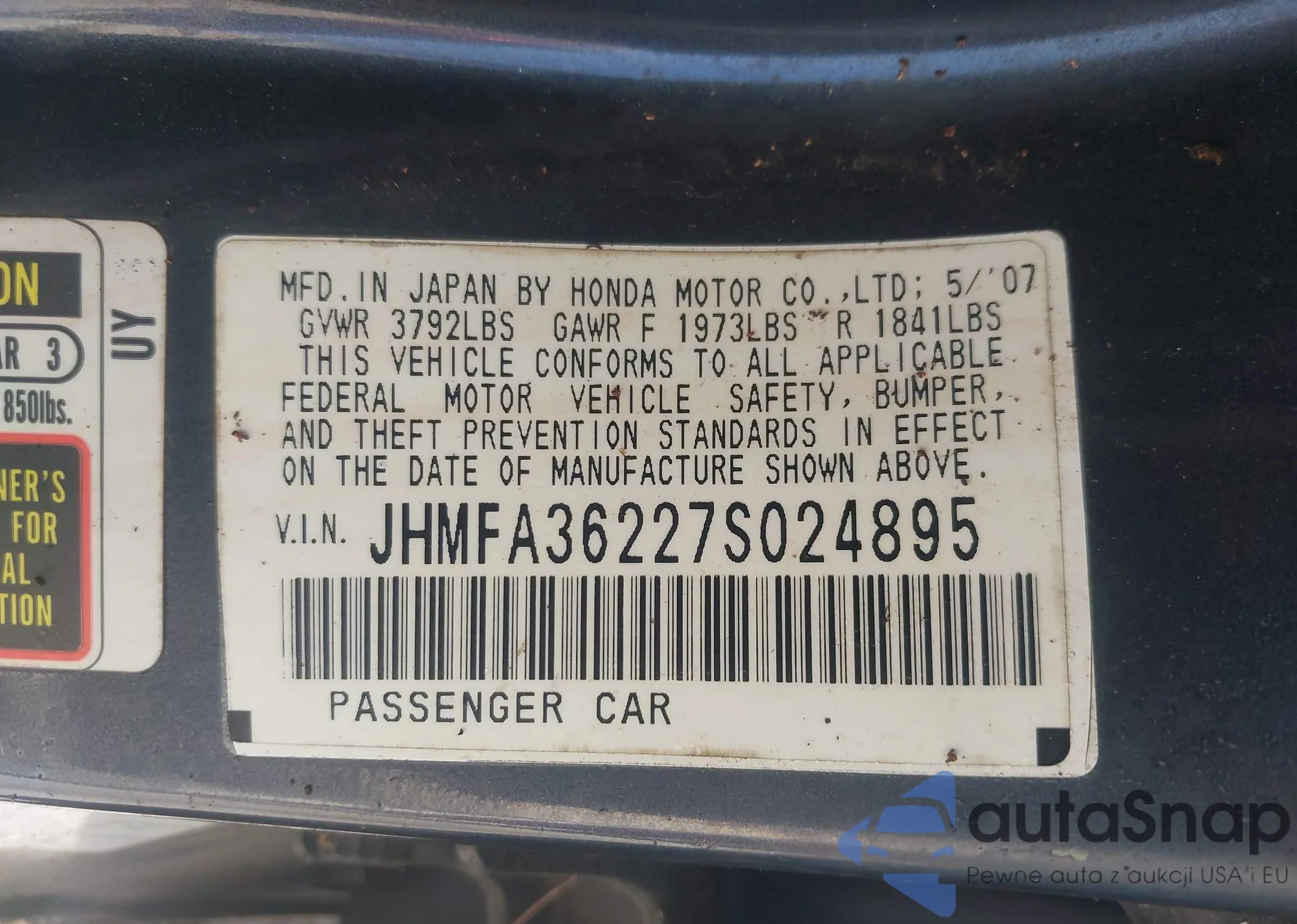 LOT: 43106466 VIN: JHMFA36227S024895