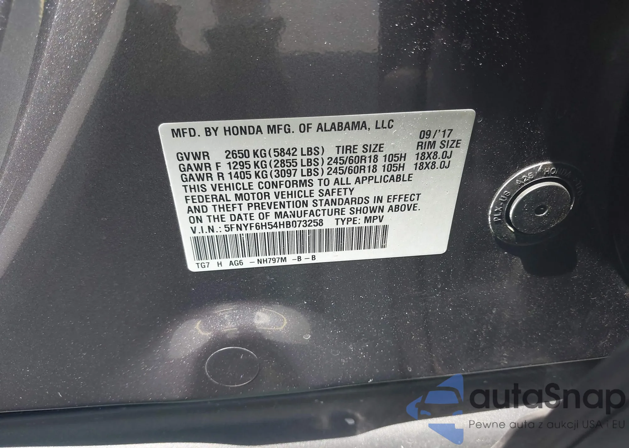 • VIN 5FNYF6H54HB073258