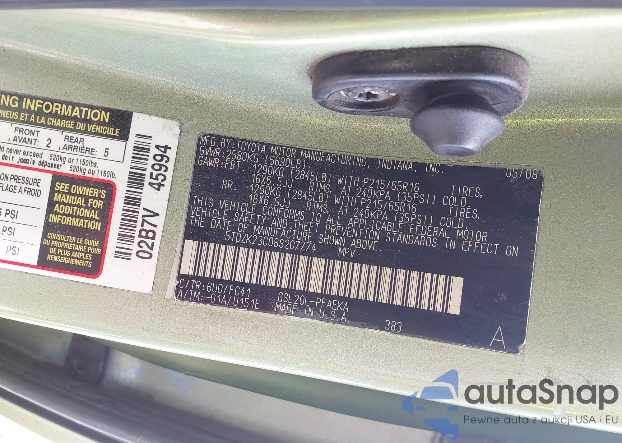LOT: 43089638 VIN: 5TDZK23C08S207774