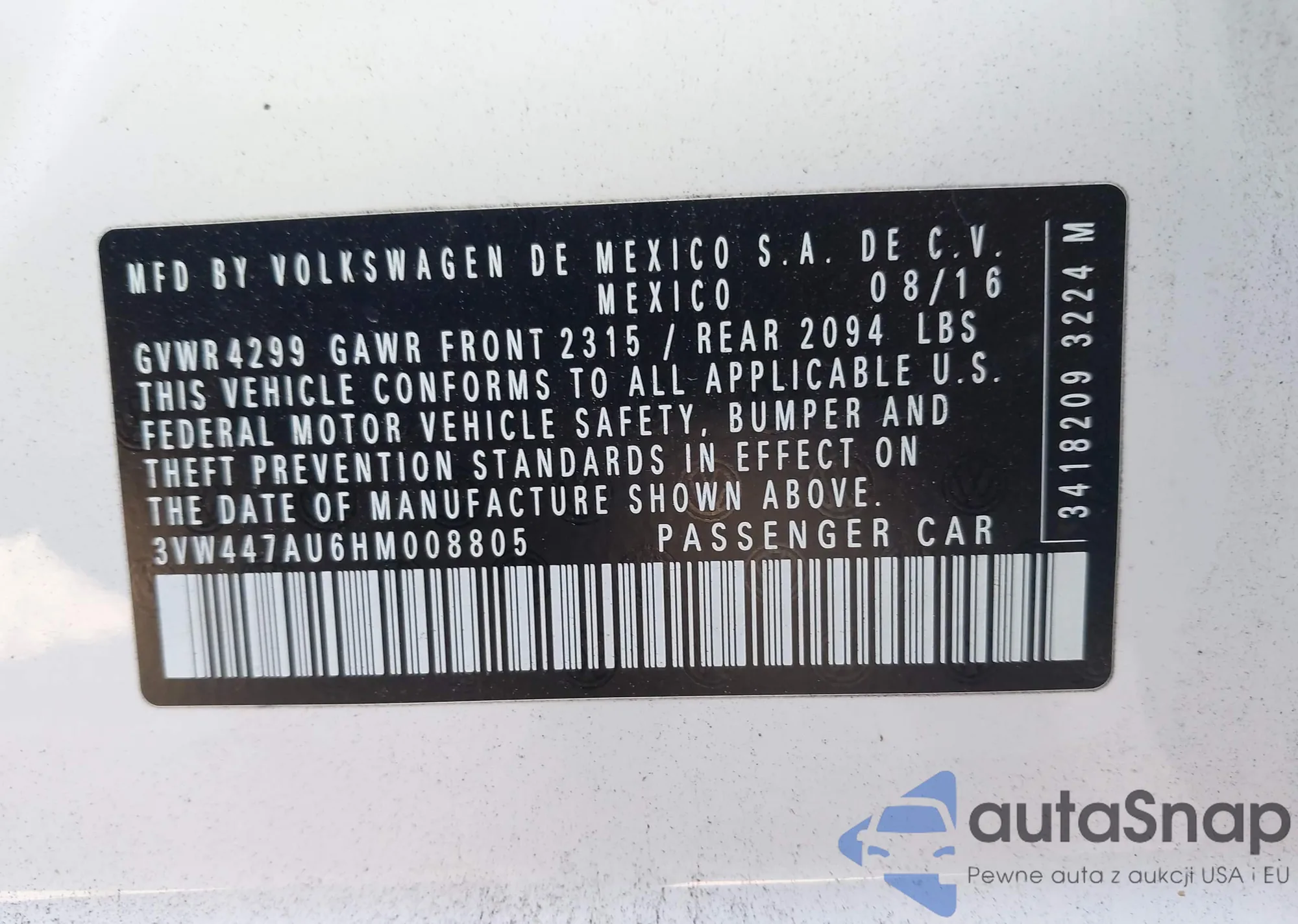 • VIN 3VW447AU6HM008805
