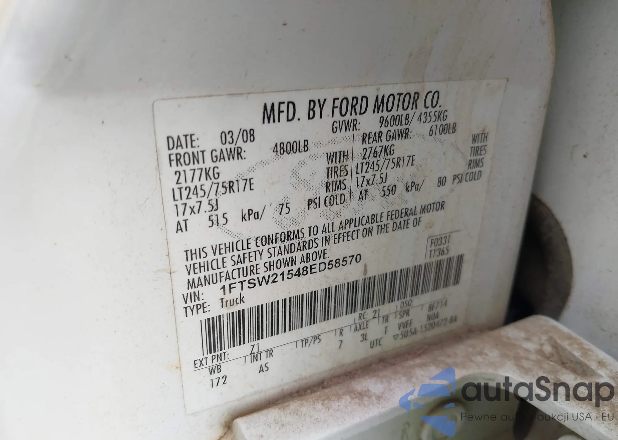 LOT: 43218326 VIN: 1FTSW21548ED58570