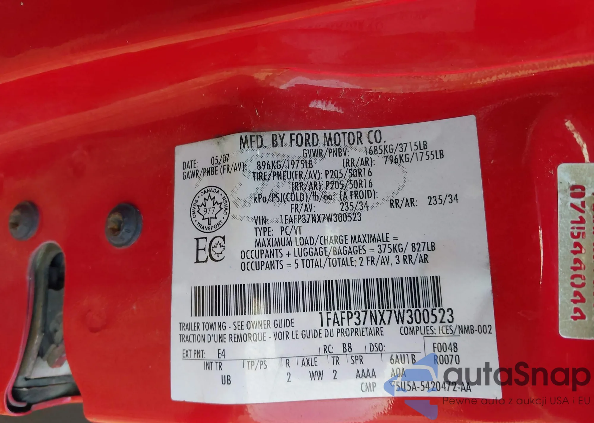• VIN 1FAFP37NX7W300523