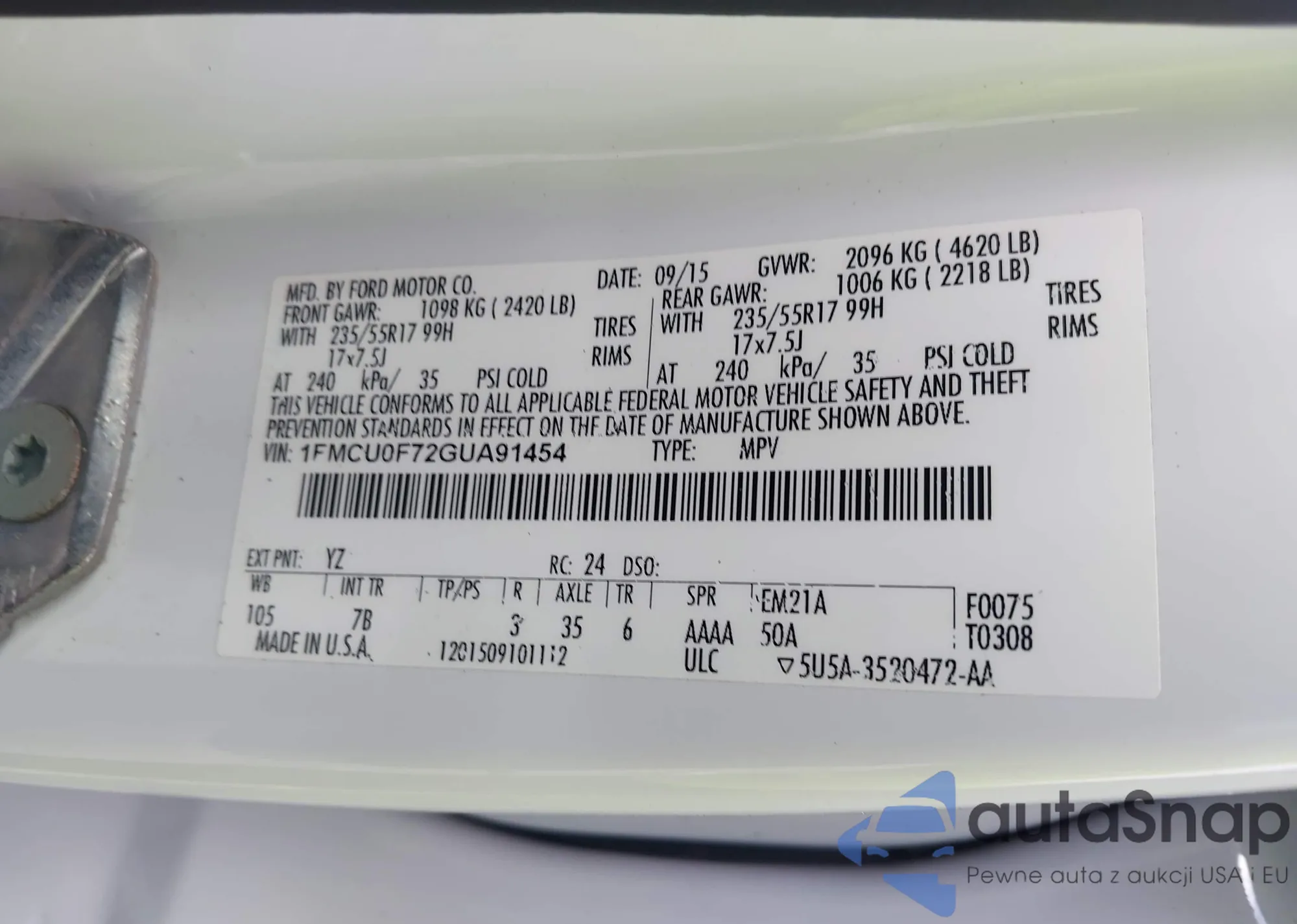 LOT: 43244144 VIN: 1FMCU0F72GUA91454
