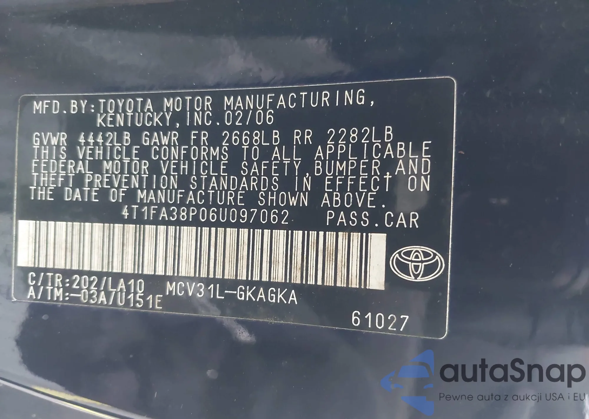 LOT: 43244193 VIN: 4T1FA38P06U097062