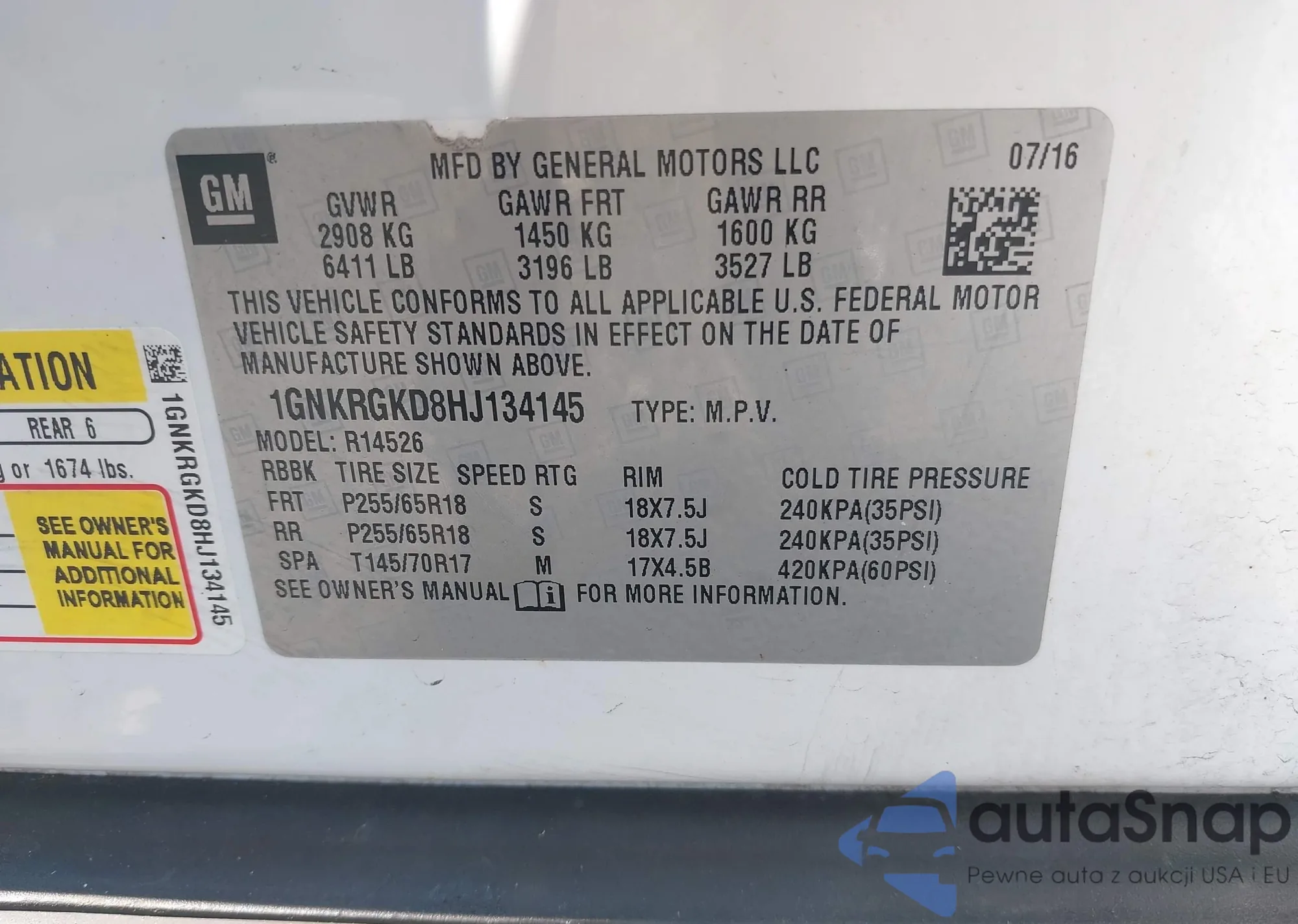 LOT: 43194718 VIN: 1GNKRGKD8HJ134145