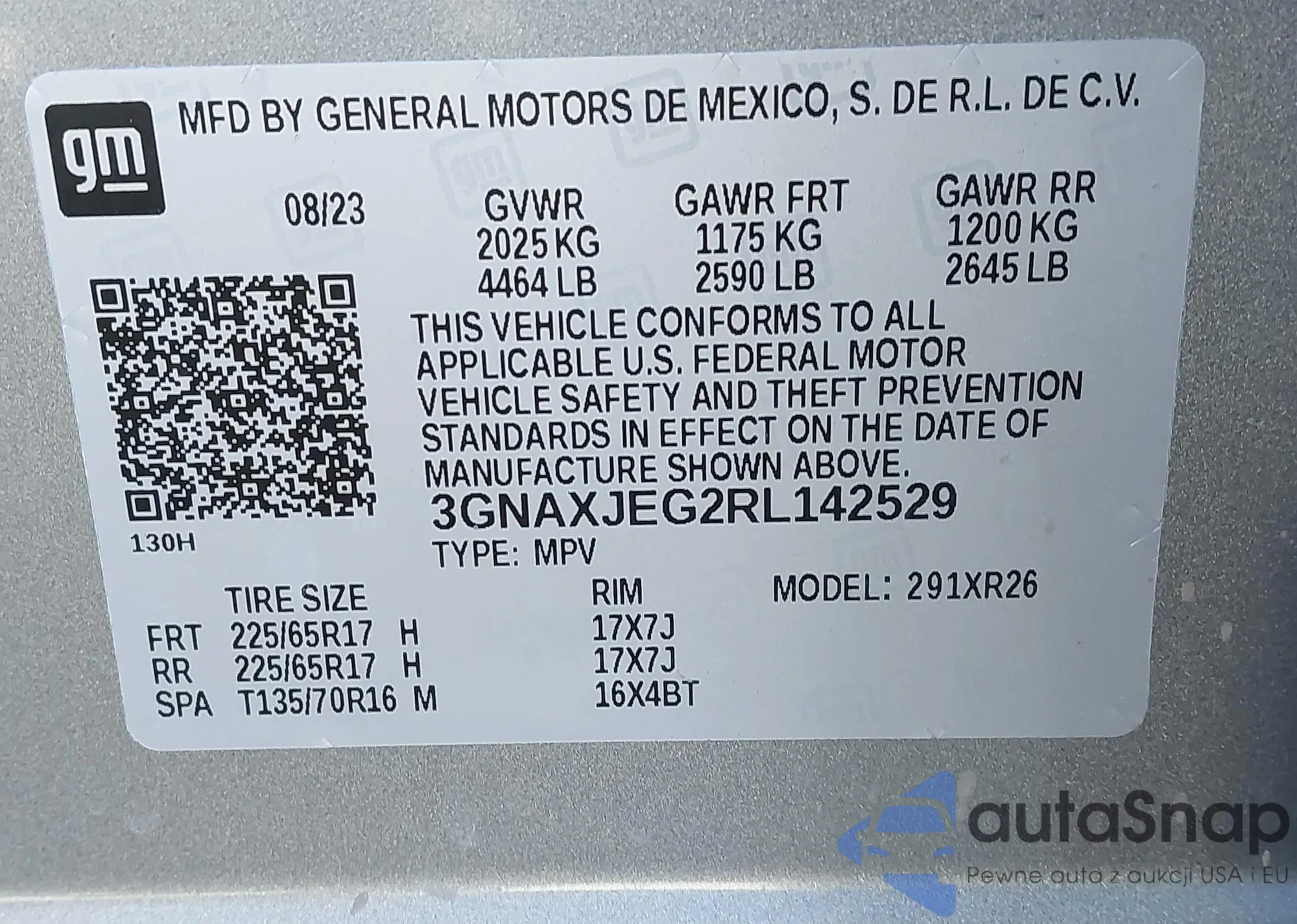 • VIN 3GNAXJEG2RL142529