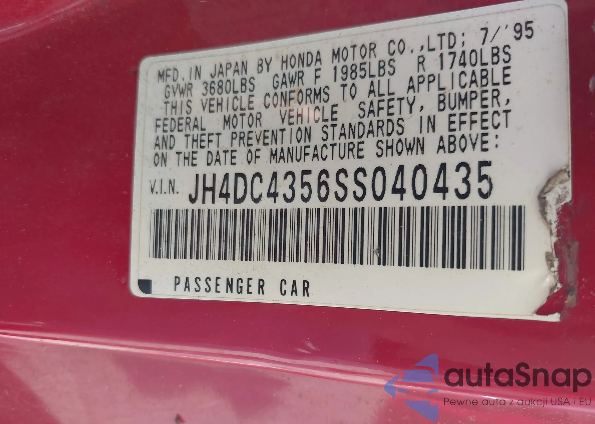 • VIN JH4DC4356SS040435