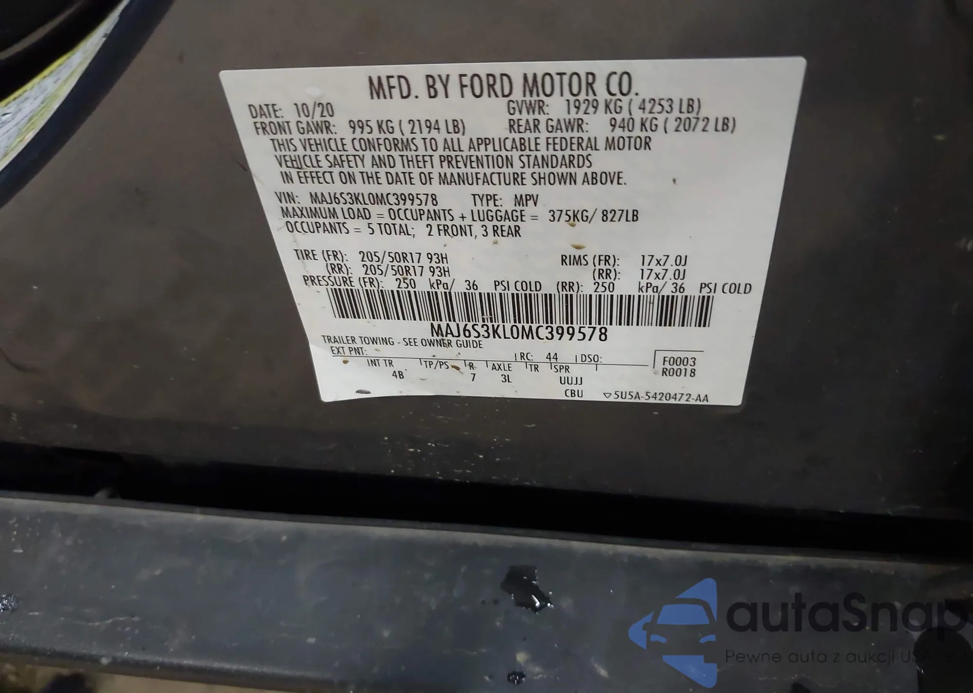 • VIN 5N1AR2MM6DC633931