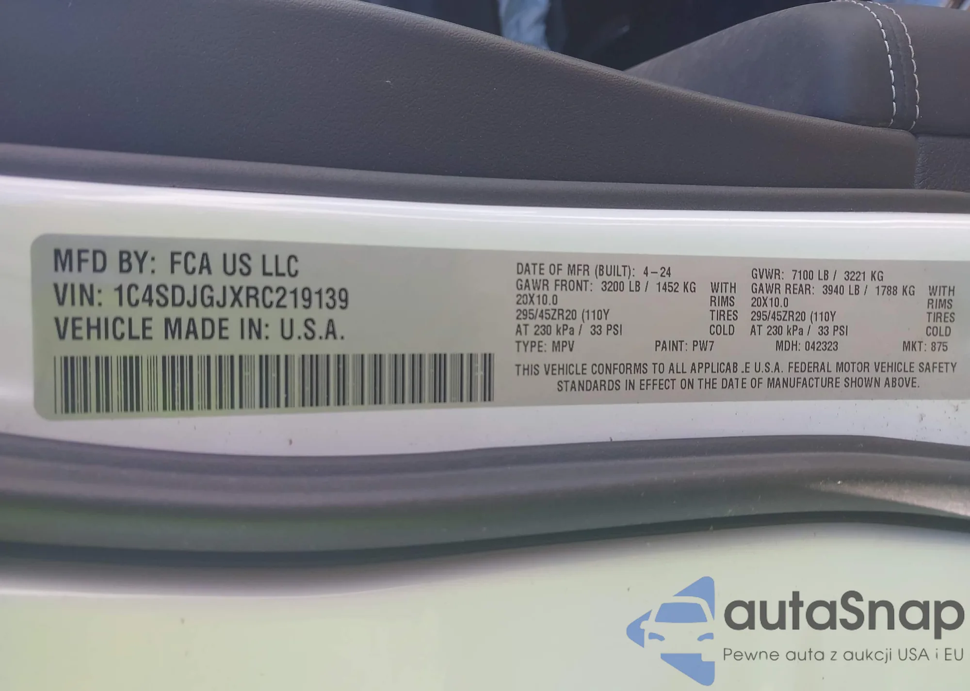 LOT: 42997947 VIN: 1C4SDJGJXRC219139