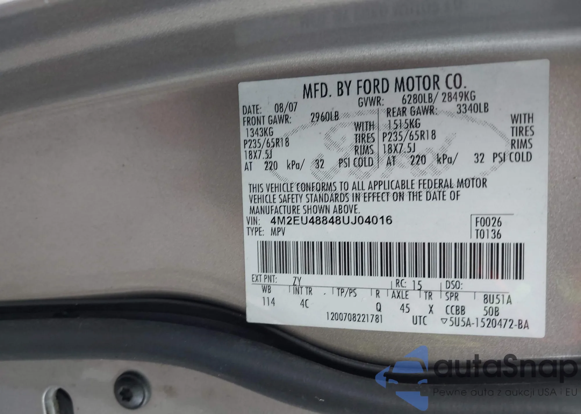 • VIN 4M2EU48848UJ04016