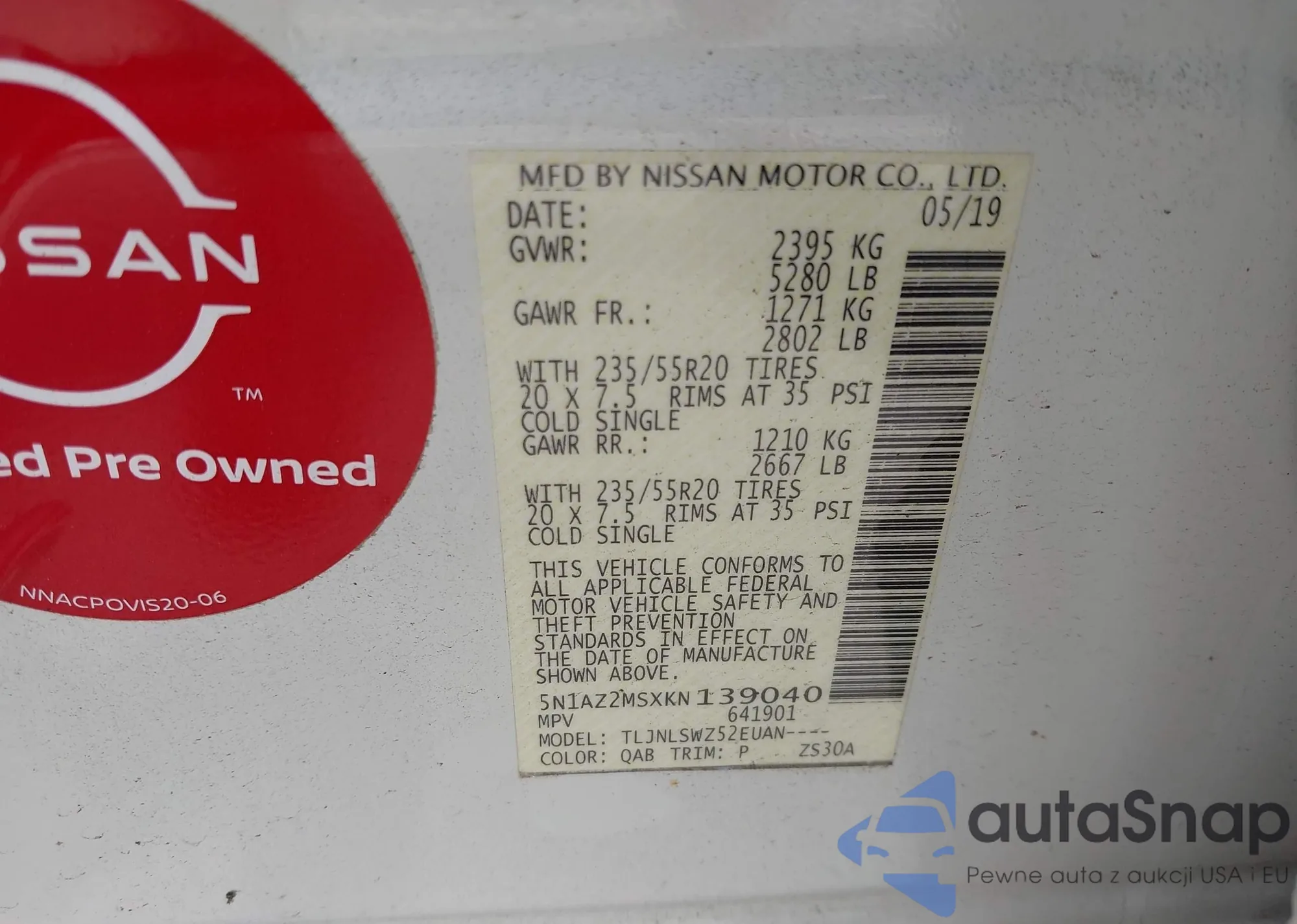 • VIN 5N1AZ2MSXKN139040