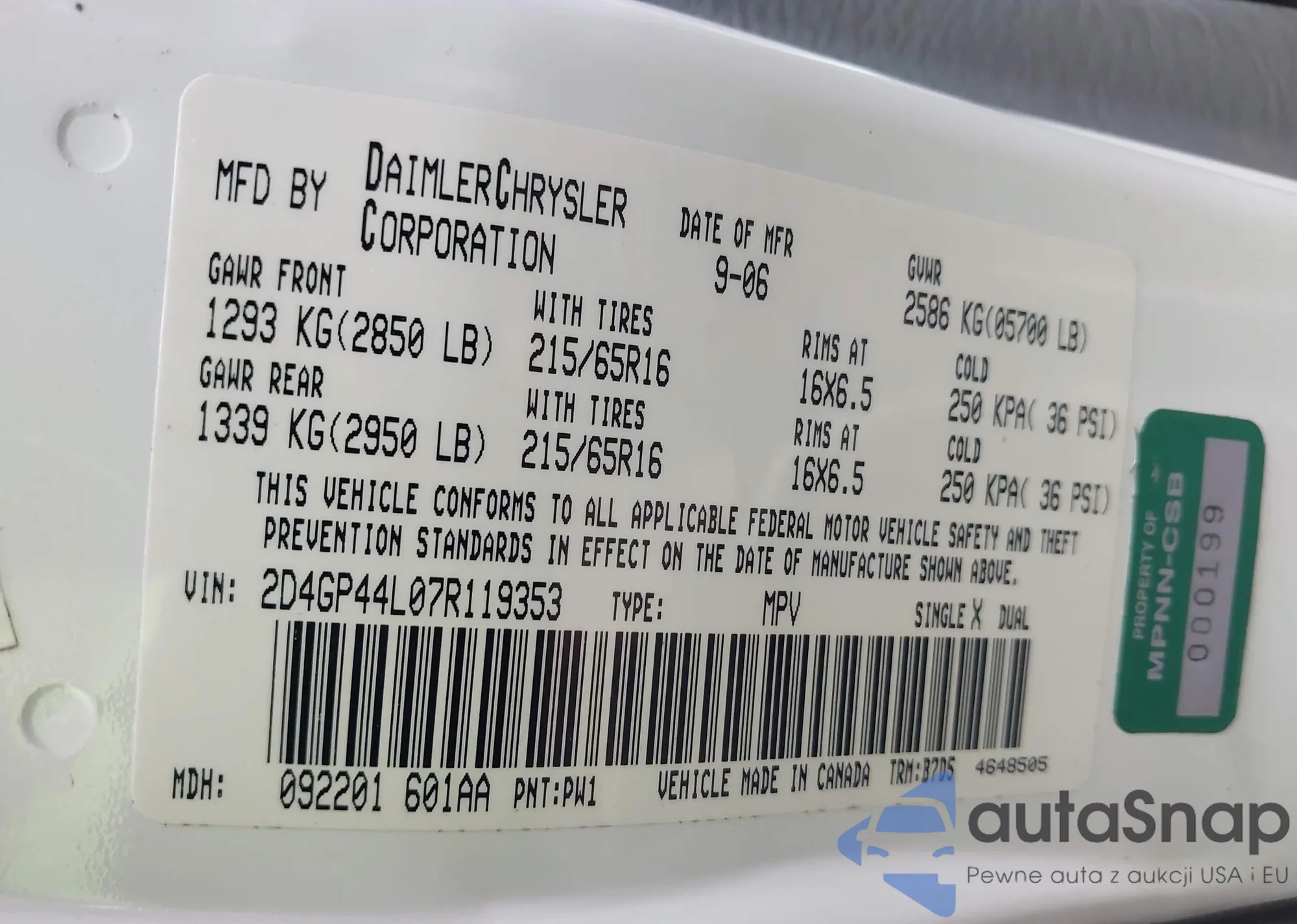 LOT: 43145946 VIN: 2A8HR54P08R740705