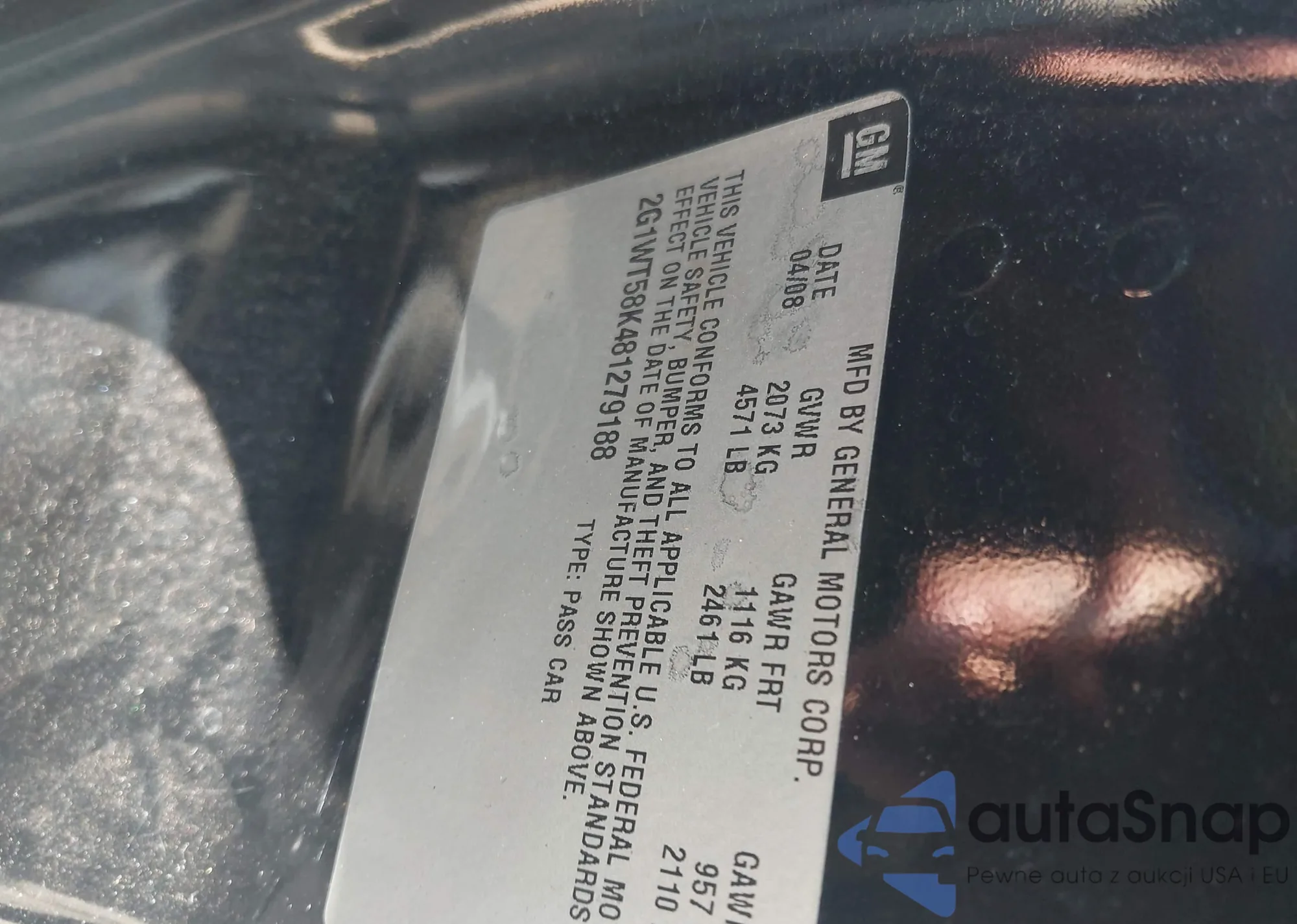 LOT: 43165998 VIN: 2G1WT58K481279188