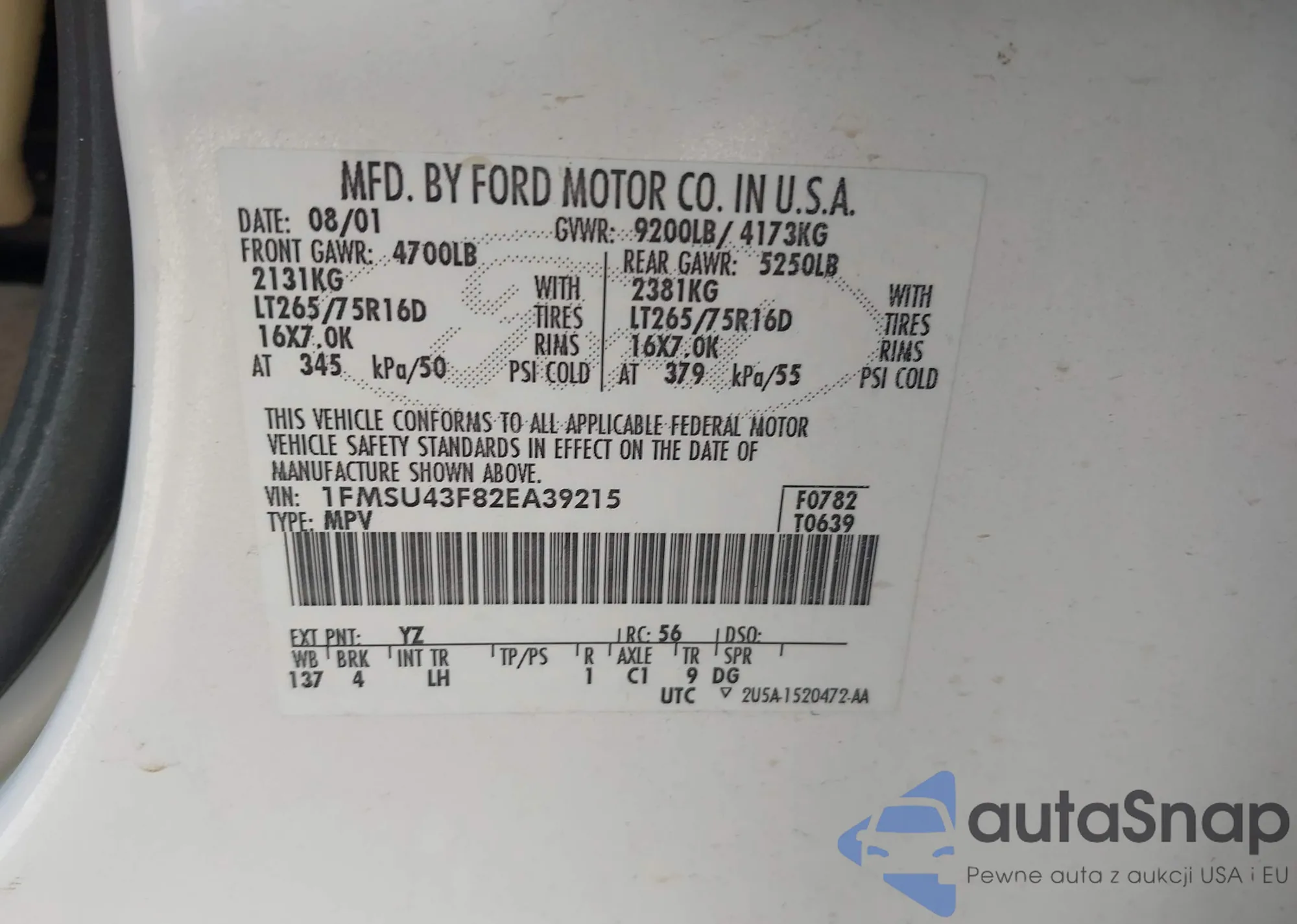 LOT: 43178671 VIN: 1FMSU43F82EA39215