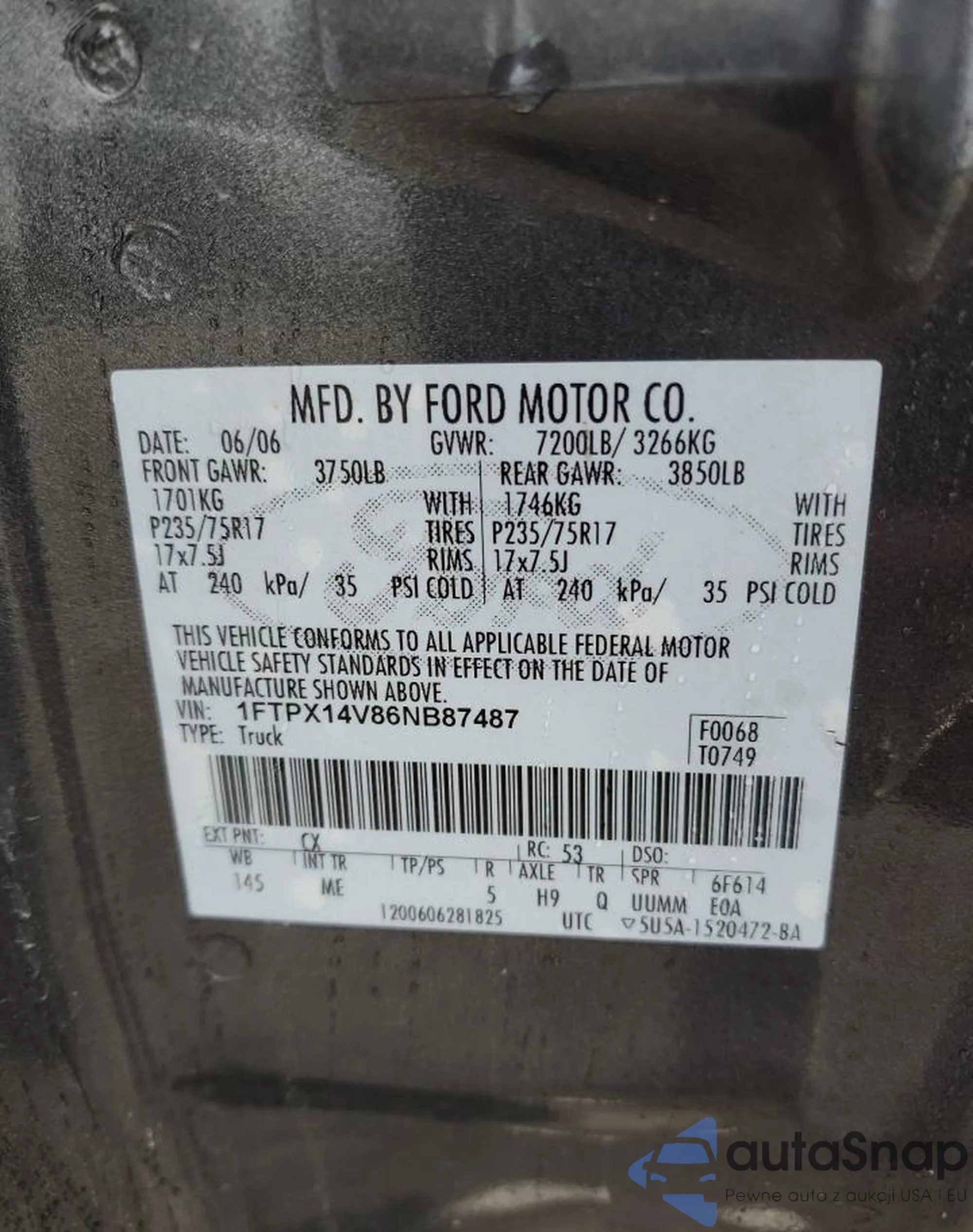 LOT: 70517385 VIN: 1FTPX14V86NB87487