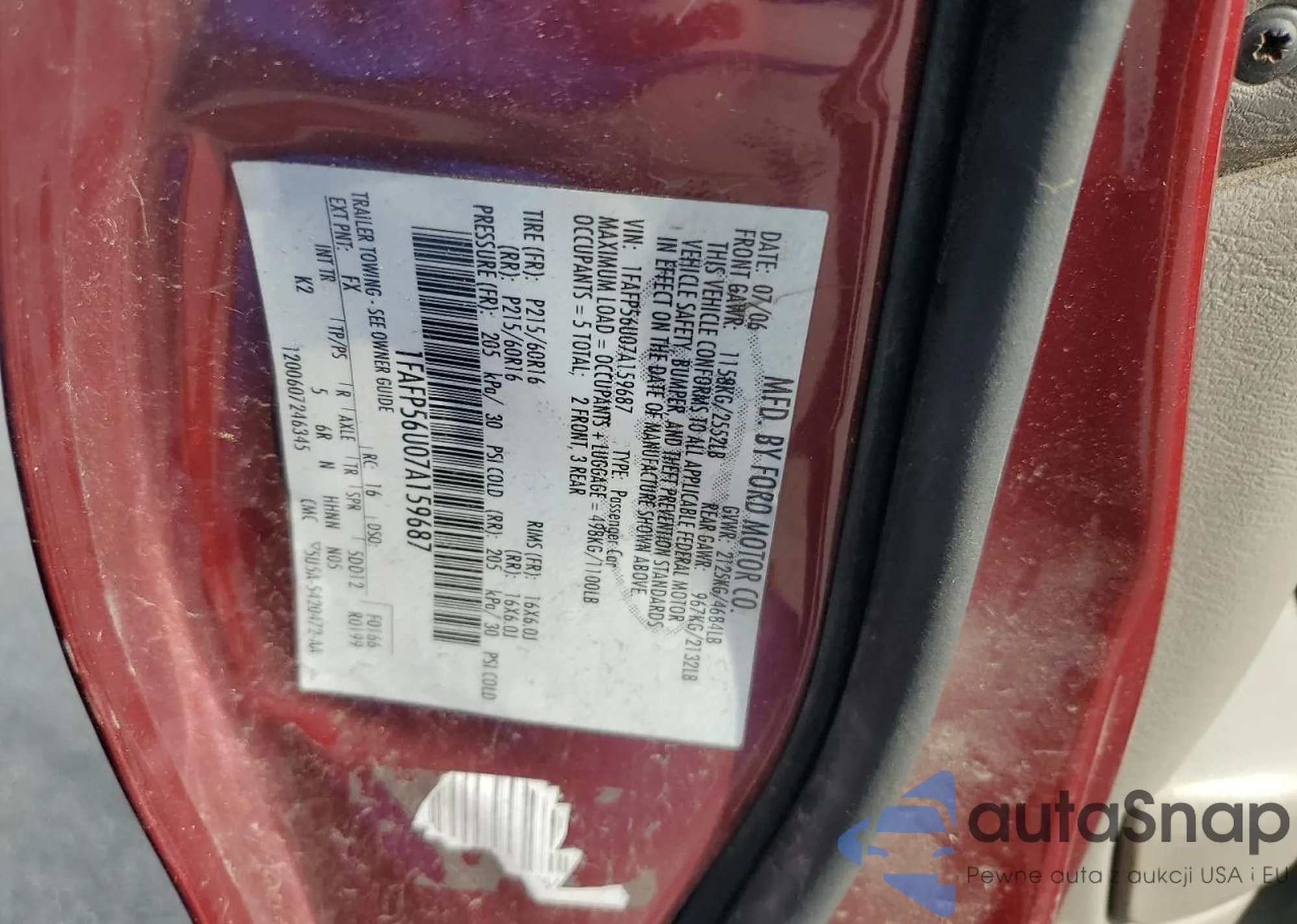 LOT: 71830955 VIN: 1FAFP56U07A159687