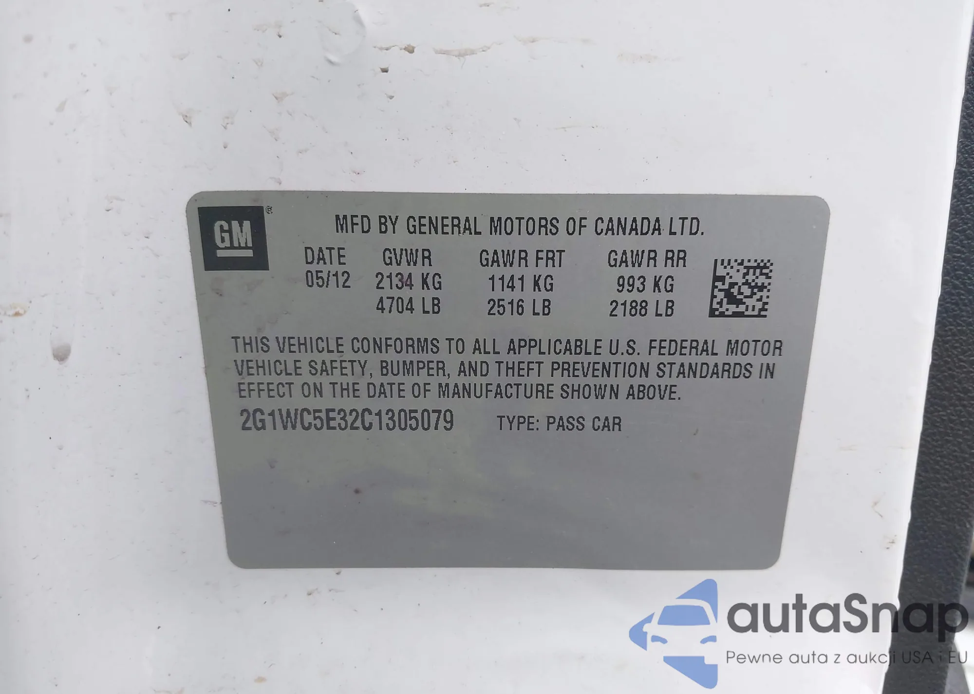 • VIN 2G1WC5E32C1305079