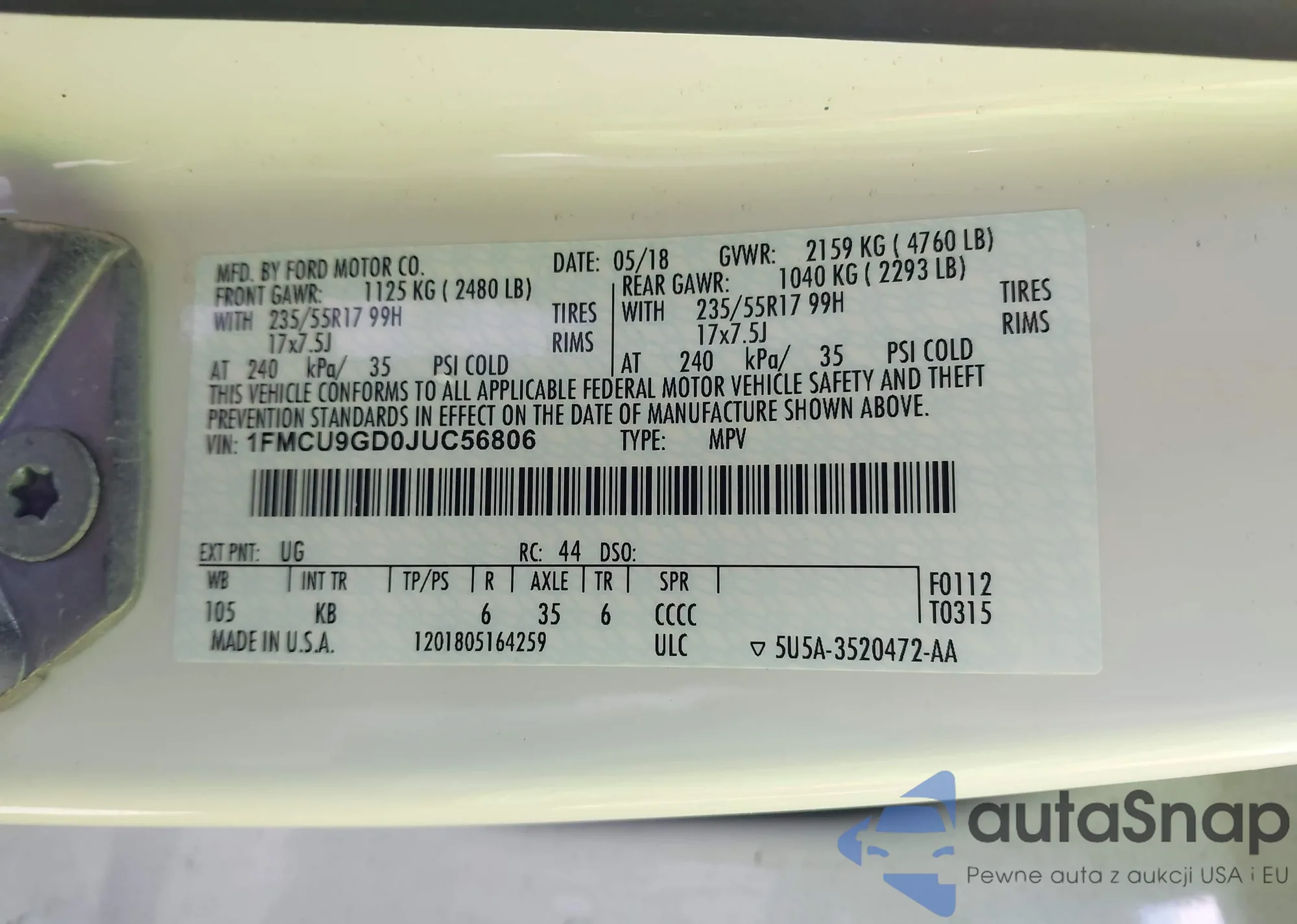• VIN 1FMCU9GD0JUC56806